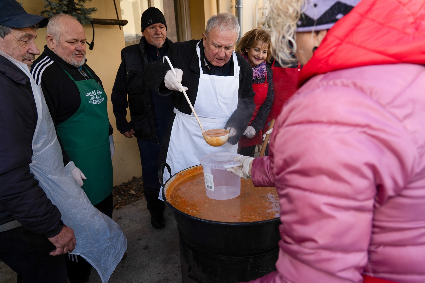 Az adventi időszakban több ételosztás is volt Gyulán. A gazdaudvarban a Gyulai Gazda- és Polgári Egyesület szervezte meg az ételosztást. Hagyomány már a helyi gazdák részéről a rászorulók segítése. Werner György elnök vezetésével karácsonykor és húsvétkor osztanak ételt. Idén december 21-én, szombat várták a rászorulókat a gazdaudvaron, ahol 500 adag babgulyást osztottak szét. Emellett Mikus Évára emlékezve, aki minden évben hozzájárult az akcióhoz, egy 100 szeletes tortával is megvendégelték az érkezőket.
