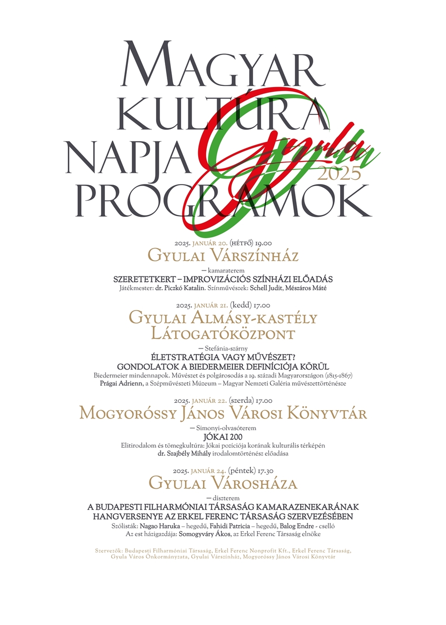 Több programmal is várják az érdeklődőket a magyar kultúra napja alkalmából január 20. és 24. között Gyulán.