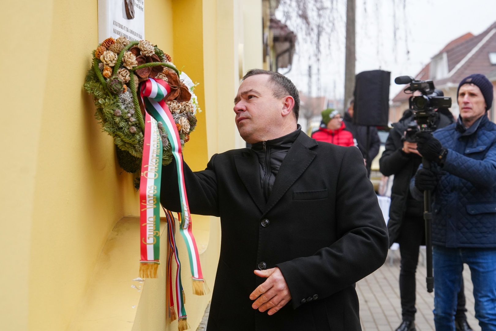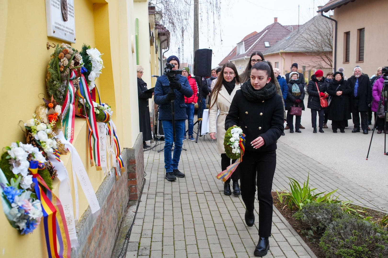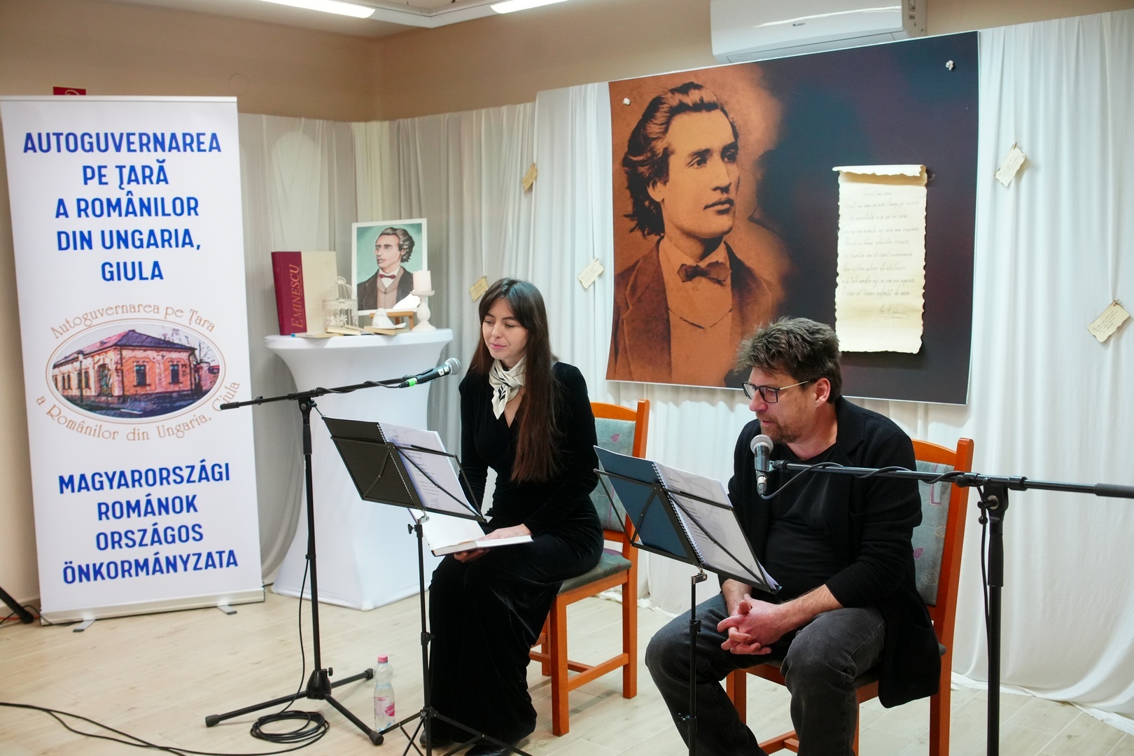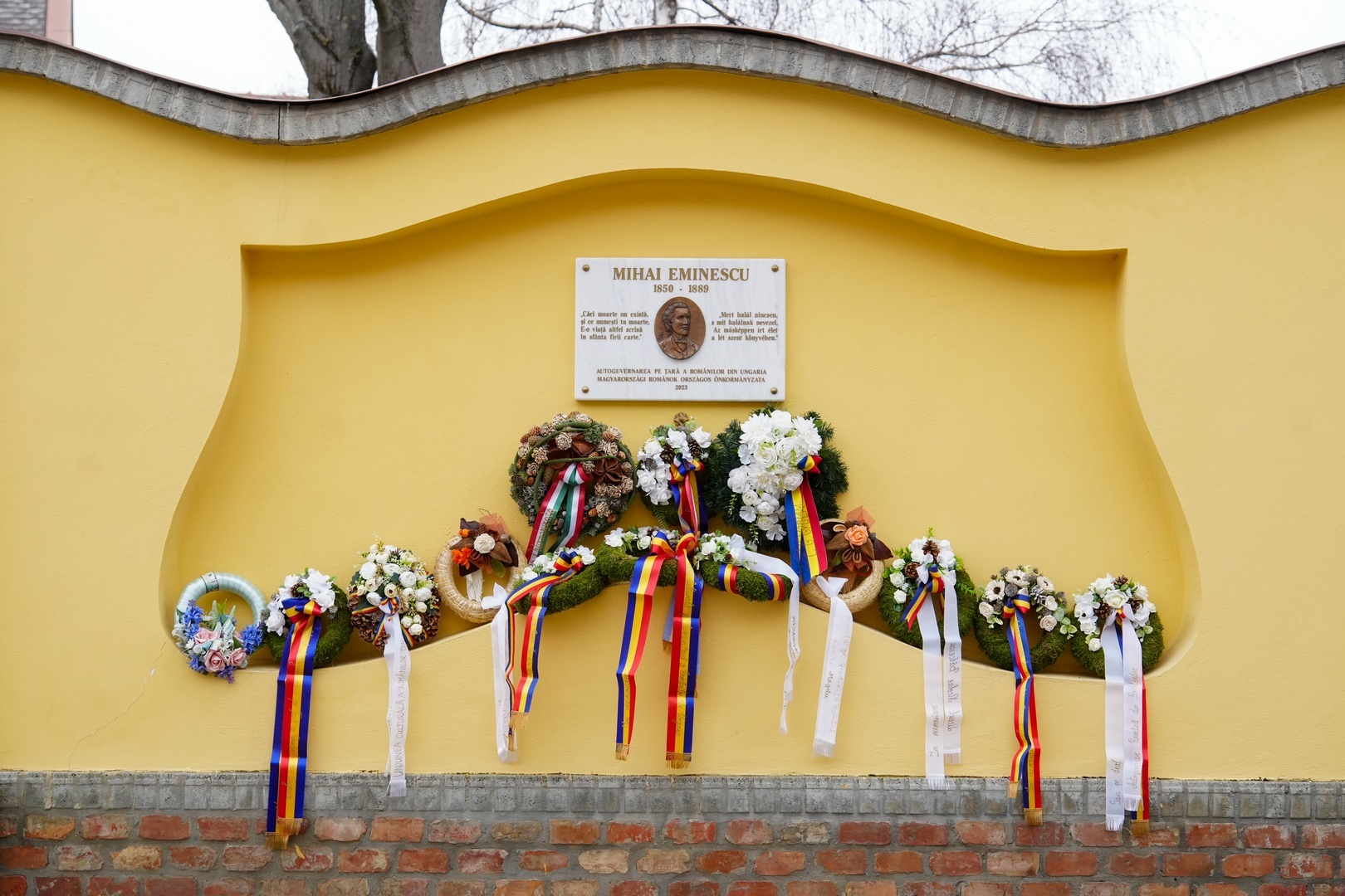A román kultúra napja alkalmából megkoszorúzták a 175 éve született román költő, Mihai Eminescu emléktábláját január 15-én Gyulán, a Magyarországi Románok Országos Önkormányzata (MROÖ) székházának falán.