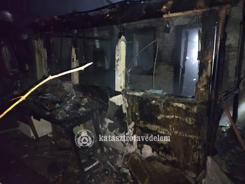 A közel kilencven négyzetméteres lakóépületben berendezési tárgyak égtek, és a tűzben felrobbant egy háztartási gázpalack is.