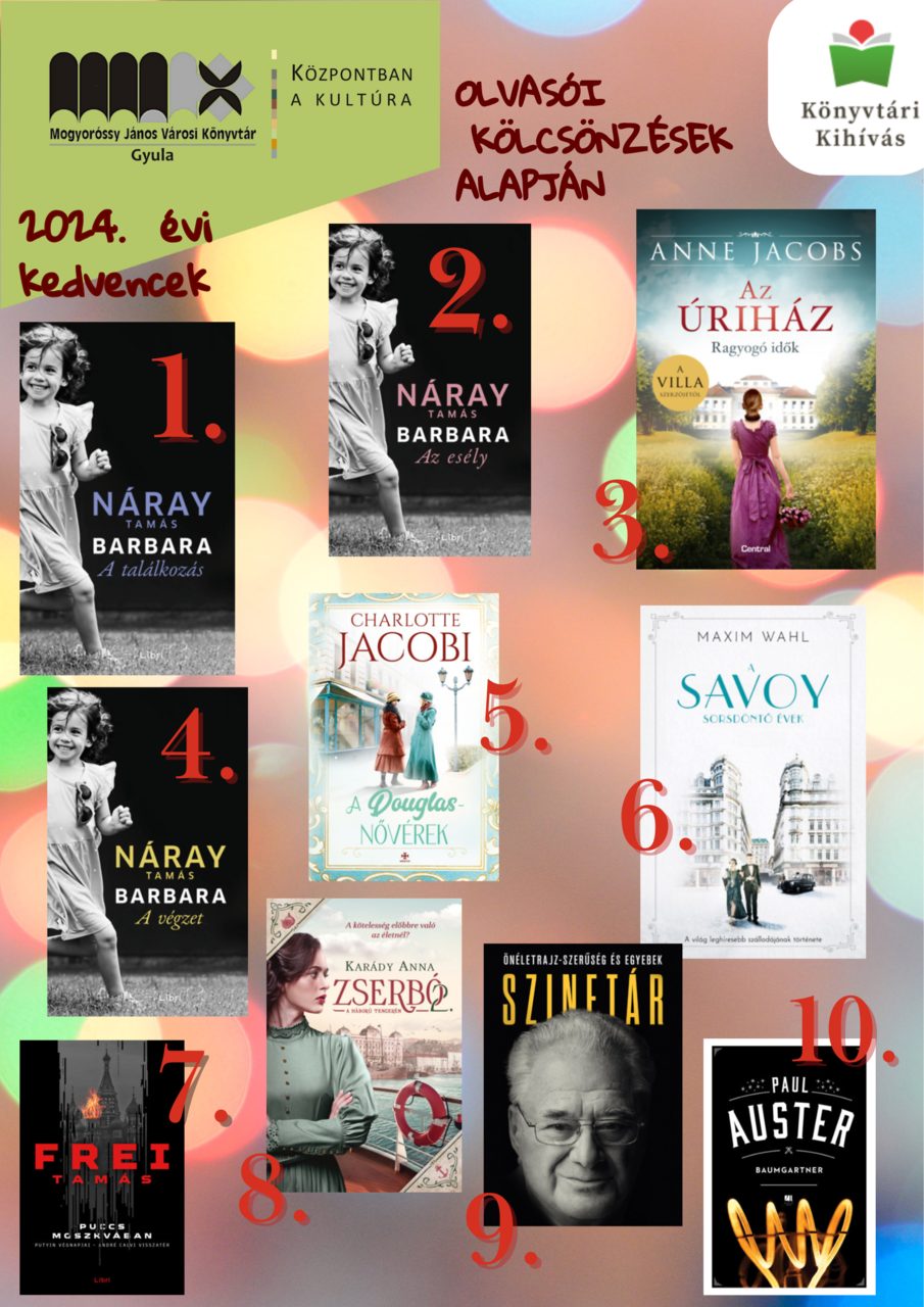 Hozzátette: a felnőtt kategóriában nem született meglepetés, továbbra is Náray Tamás Barbara könyvei a legkeresettebbek, és a top 10-be – több romantikus mű mellett – Frei Tamás és Szinetár Miklós egy-egy könyve is bekerült.