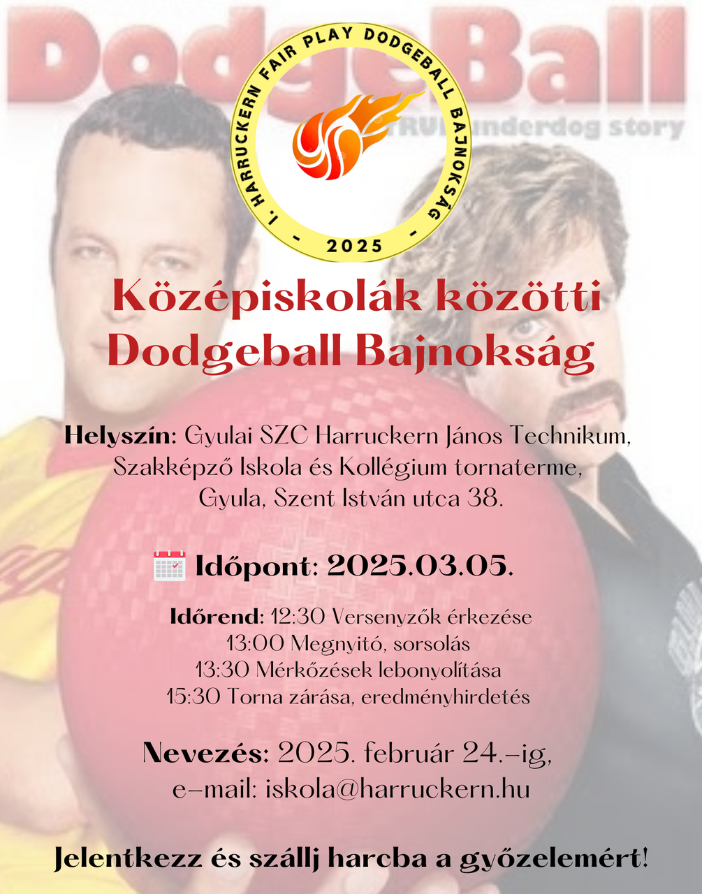 Dodgeballbajnokságot rendeznek március 5-én a Harruckern János-középiskolában – tájékoztatta lapunkat az intézmény.