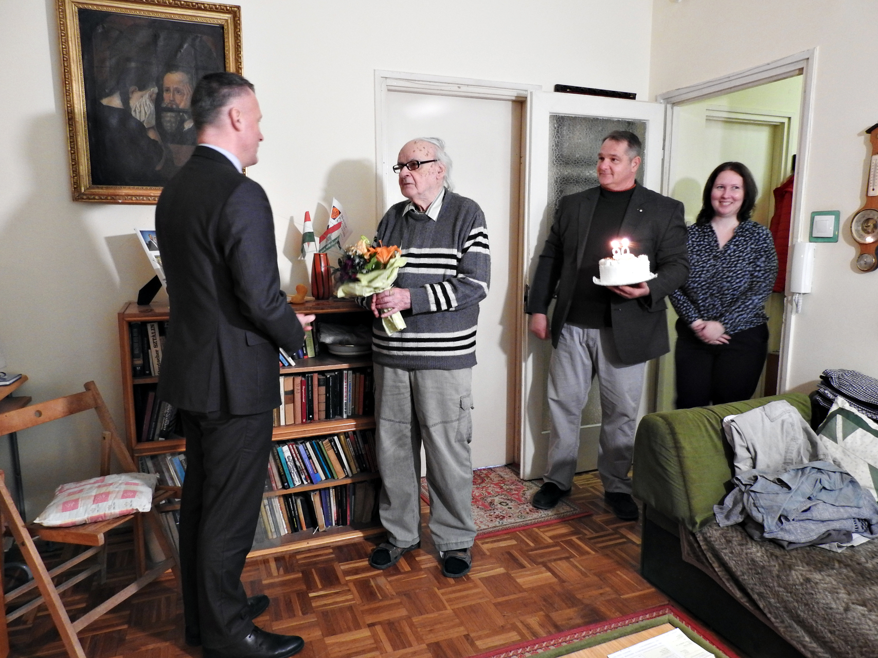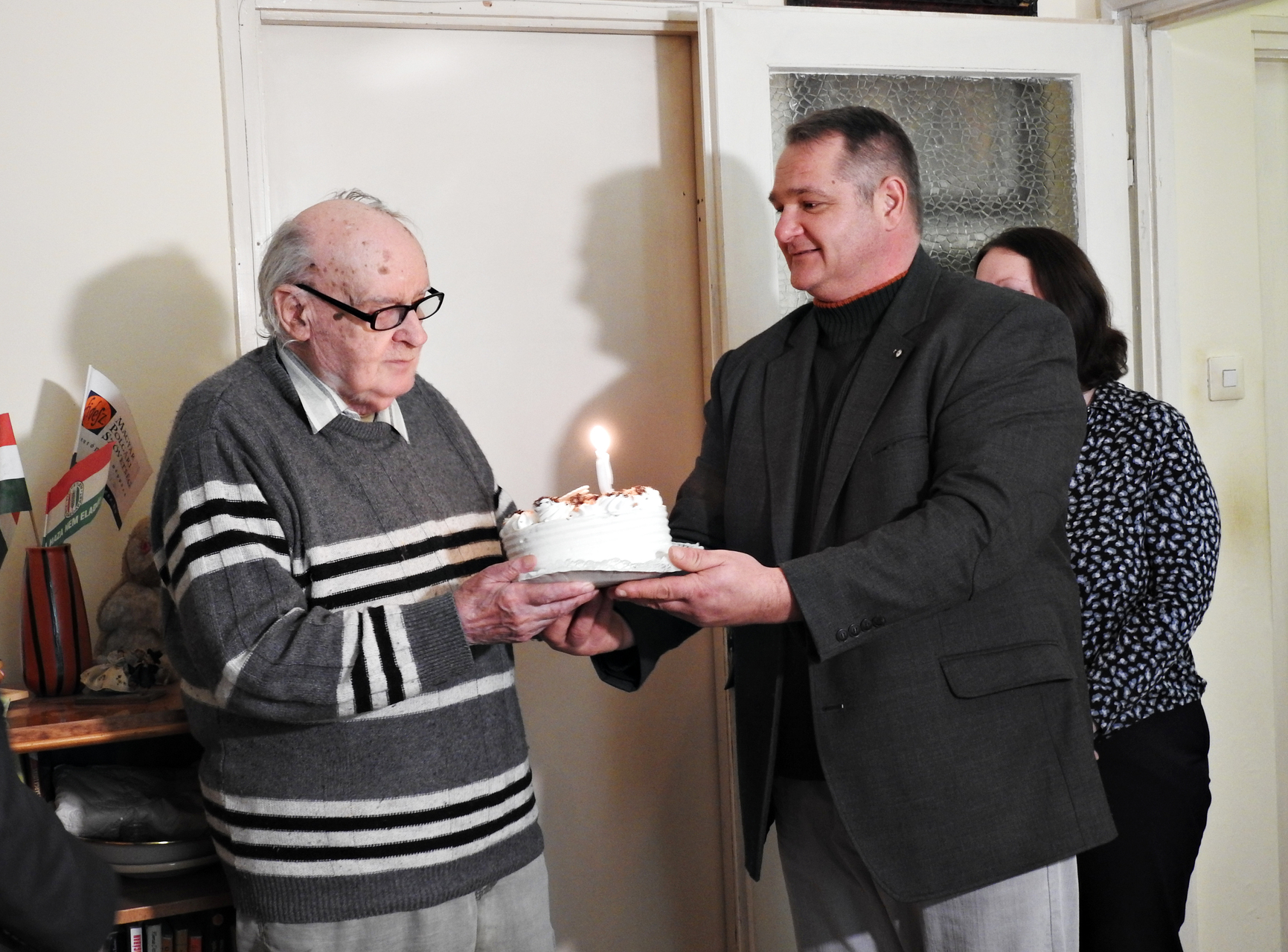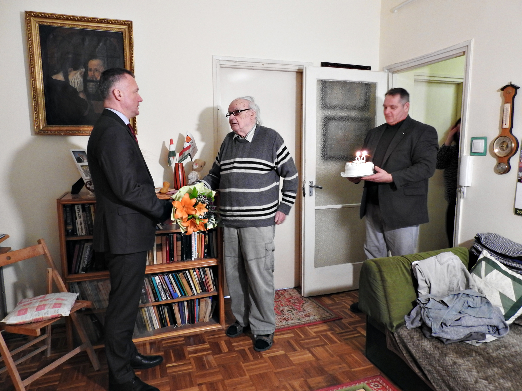 Csákabonyi György Kálmánt köszöntötte 90. születésnapja alkalmából Görgényi Ernő polgármester, Timár Andrea aljegyző és Veres András önkormányzati képviselő február 11-én.