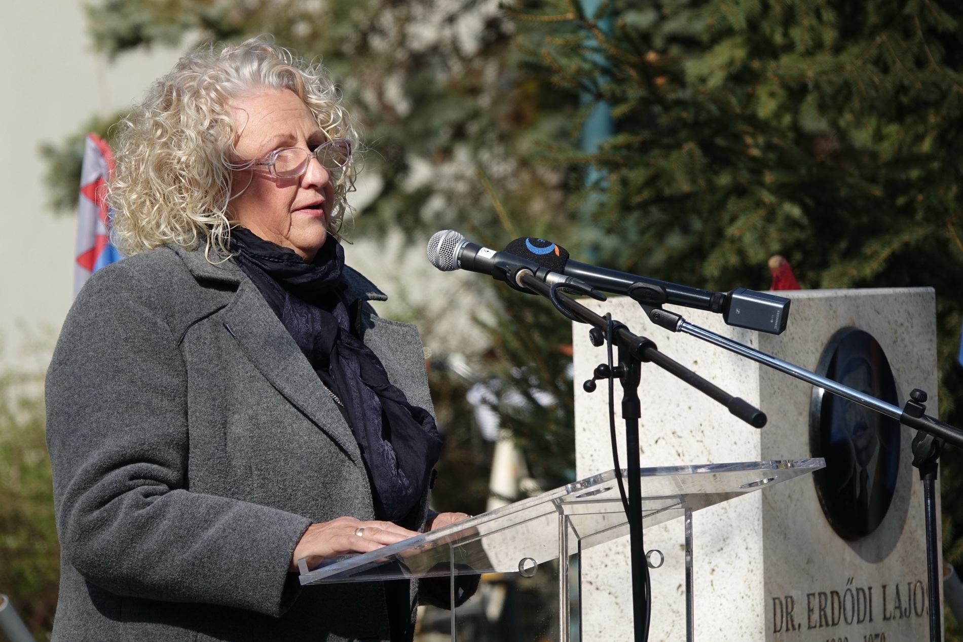A kommunizmus mélyreható társadalmi változásokat indított el, amelyek a valódi közösségek majdnem teljes felszámolásához vezettek – jelentette ki beszédében Pflaum Mária Erzsébet önkormányzati képviselő február 25-én, a kommunizmus áldozatainak emléknapján Erdődi Lajos emlékoszlopánál.