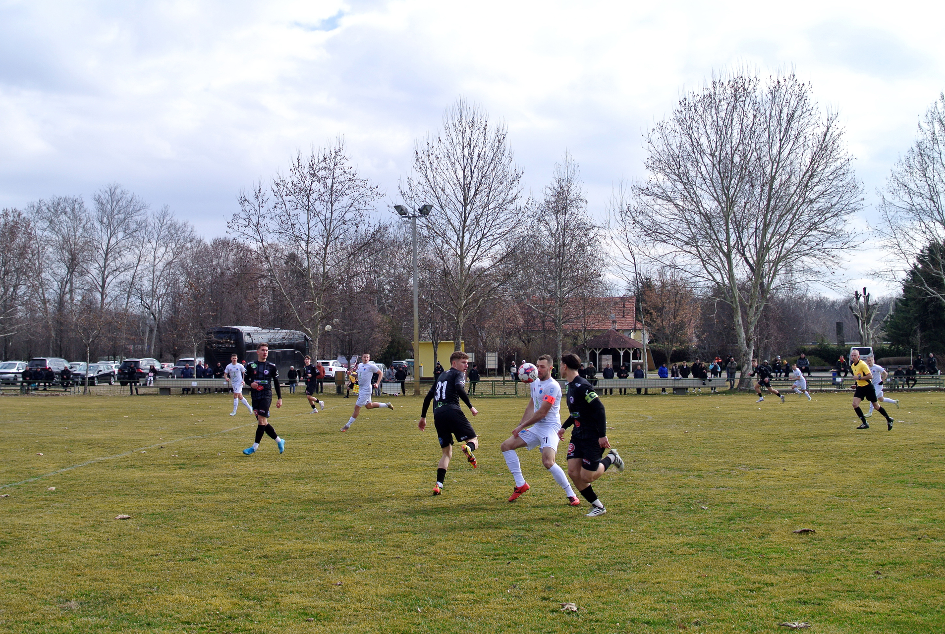 A taktikusabban építkező vendégcsapat már a hatodik percben talpra ugrasztotta a szurkolókat, amikor Szabó Zsombor szabadrúgása csattant a kapufán. A fürdővárosi fél tovább folytatta sorozatát, Czirok József és Szabó Péter is megmozgatta a hazai kapust.