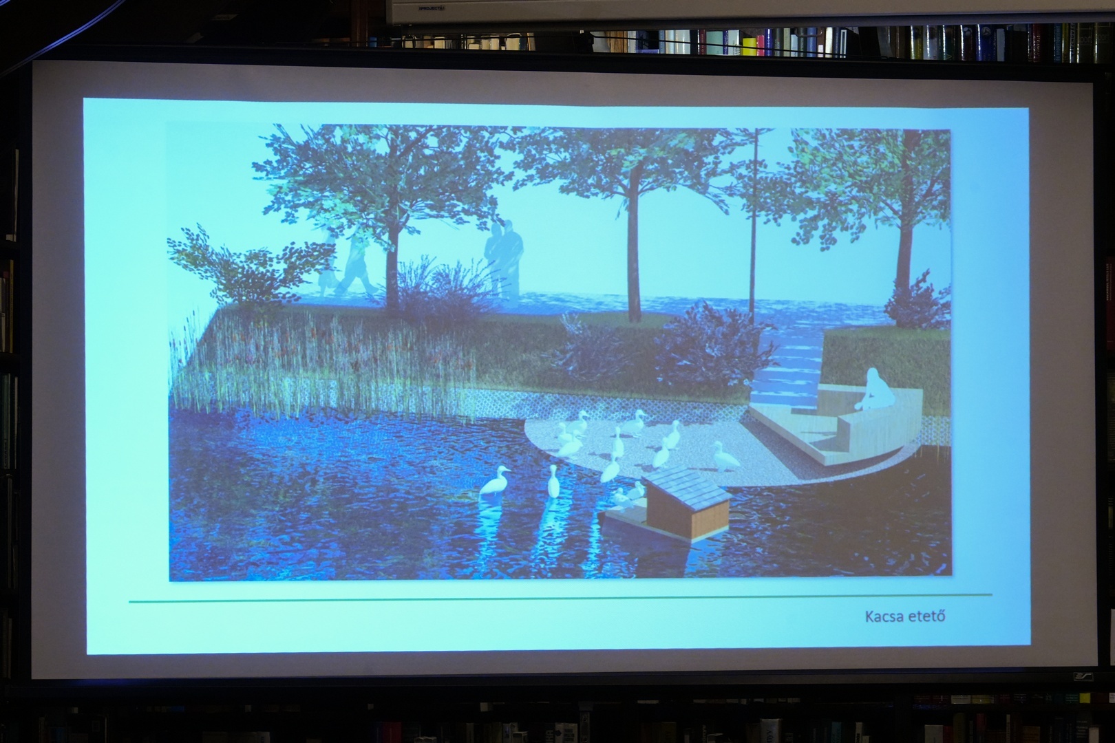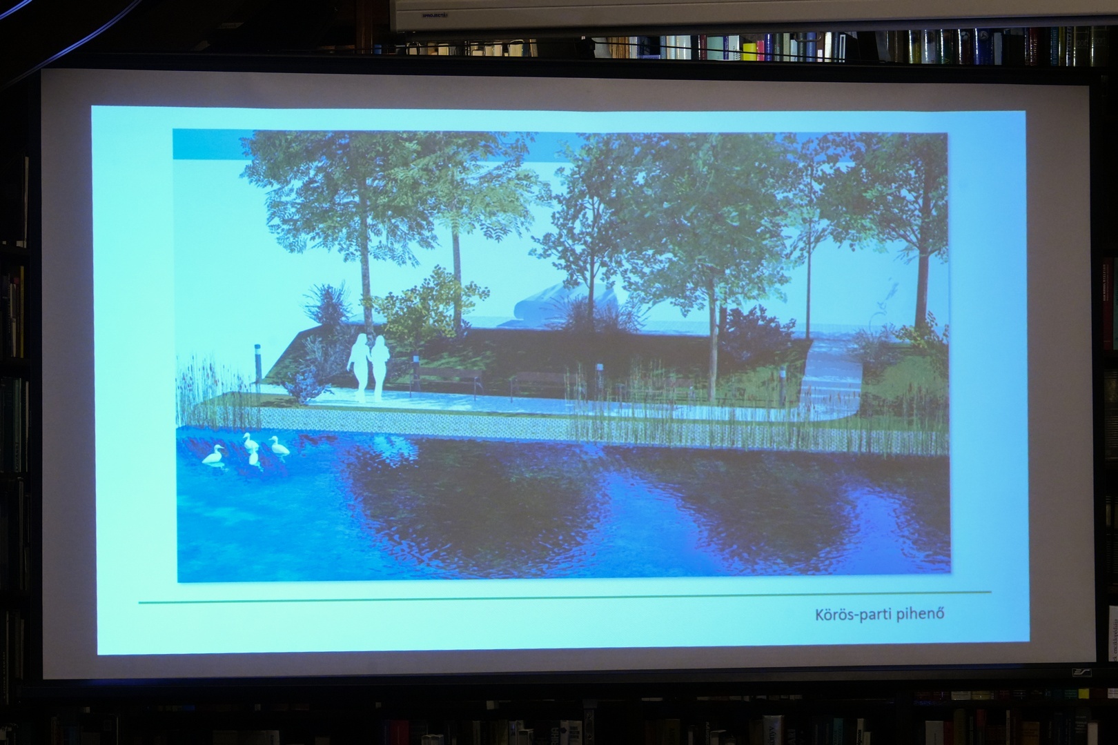 A terveket Andaházy László vezető tervező, a Pandapont Tájépítész Mérnöki Iroda ügyvezetője mutatta be. Beszélt a partszakasz fa- és növényállományáról, a közművekről, valamint a fennálló problémákról, amelyek között szerepel a terület szárazsága, a kétszintes növényállomány, valamint a csapadékvíz visszatartás hiánya.