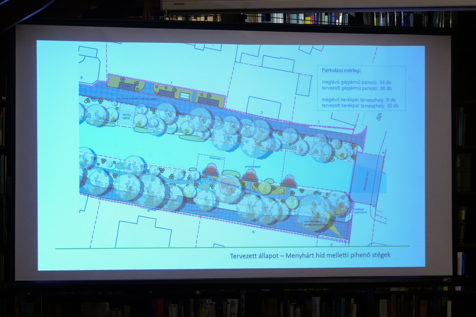 Megjegyezte: a parkolók száma bővülne kettővel, a jelenlegi hat kerékpártároló helyett pedig harmincat helyeznének el a csatorna partján.
