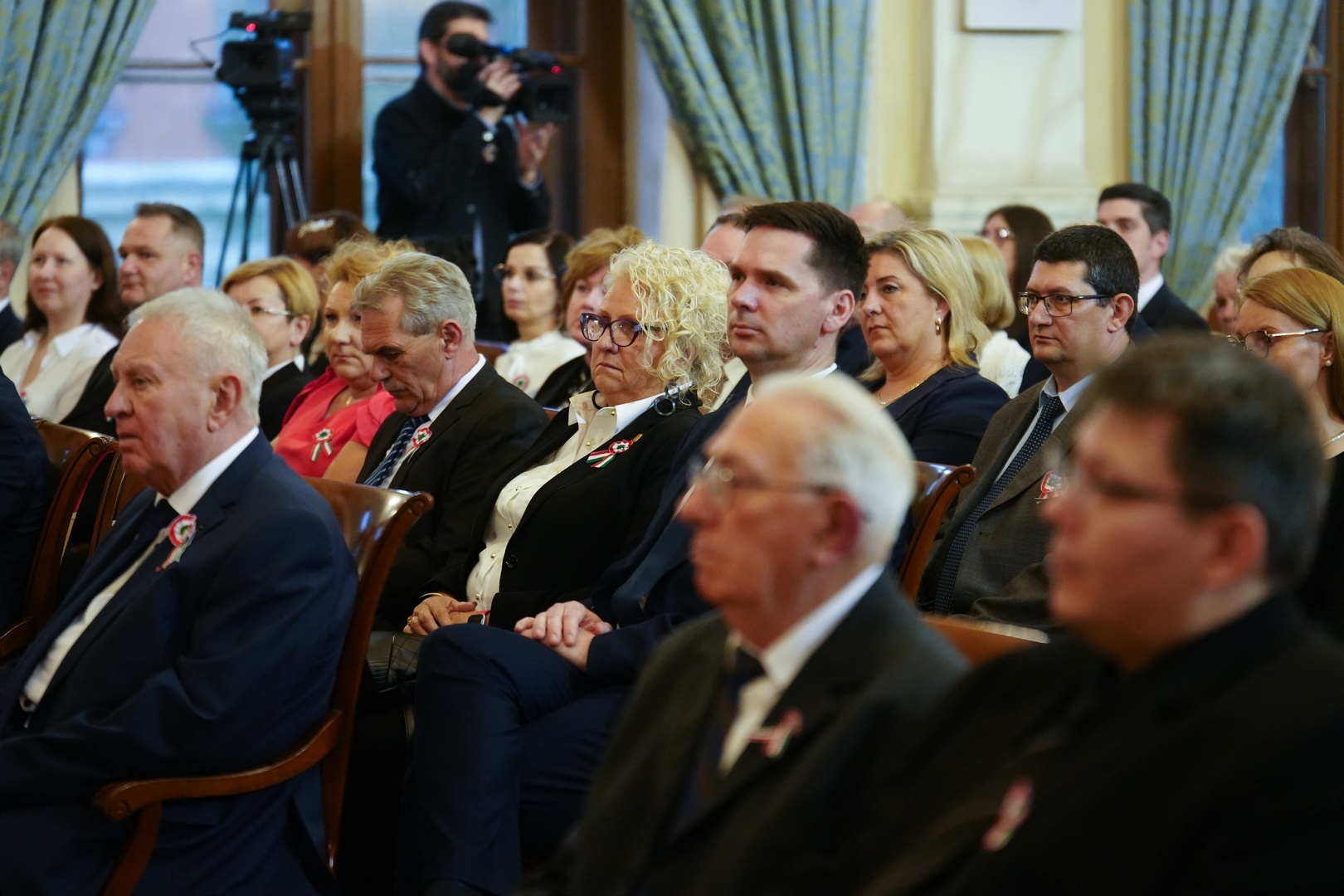 A díjazottakról szólva leszögezte: az ünnepségen olyan gyulai polgárok vehetnek át kitüntetést, „akik hosszú évek békés és eredményes alkotómunkájával szolgálják a gyulai közösségeket, ezáltal egész városunkat, édes hazánkat”.