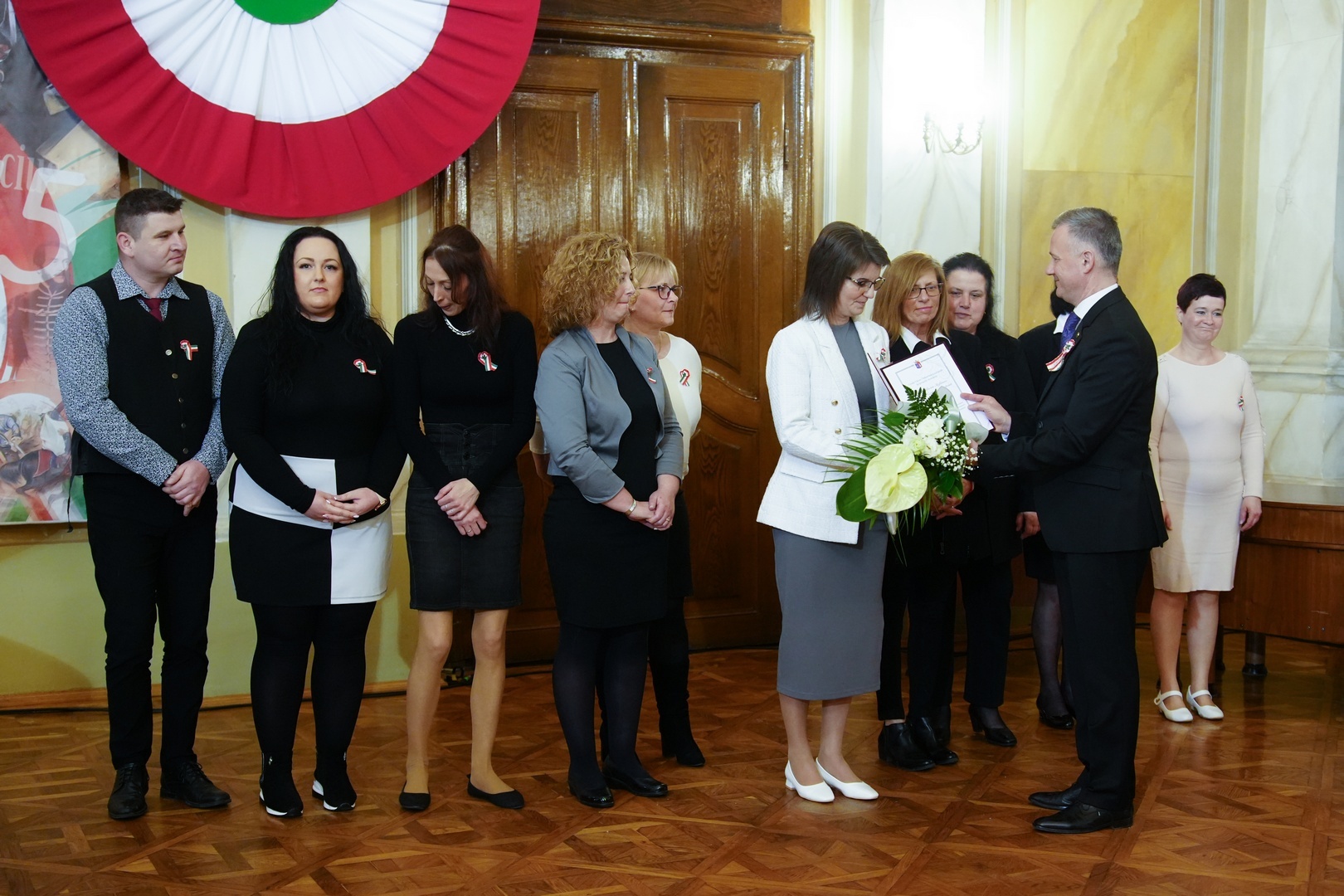 A köszöntő után a városvezető átadta a képviselő-testület által adományozott önkormányzati elismeréseket.