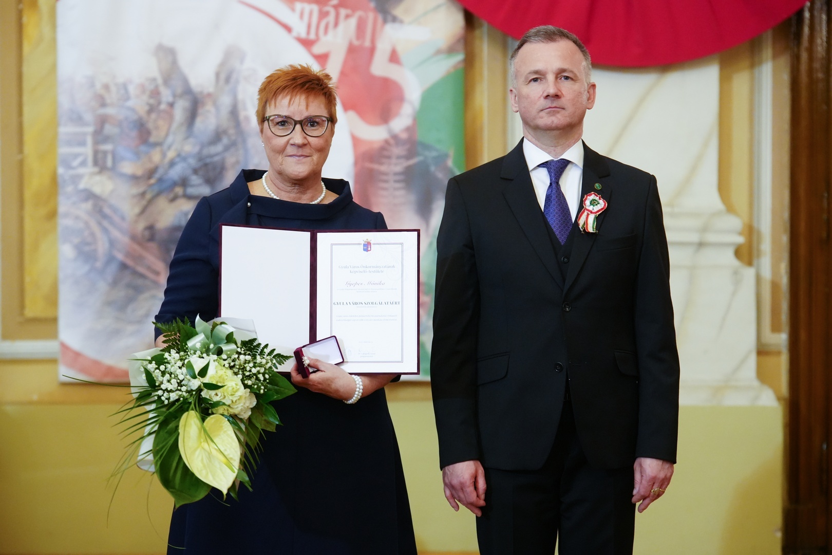 A díjazott úgy fogalmazott: hálás a jóistennek, hogy Gyulára vezérelte, abba az intézménybe, ahol 18 éves kora óta dolgozik. Hozzáfűzte: sokkal többet kapott a várostól, mint amit eddig adni tudott neki. Köszönetet mondott az őt díjazóknak, volt és jelenlegi munkatársainak, igazgatóinak, a családjának, valamint a rá bízott embereknek, akiktől nagyon sok szeretetet kapott.