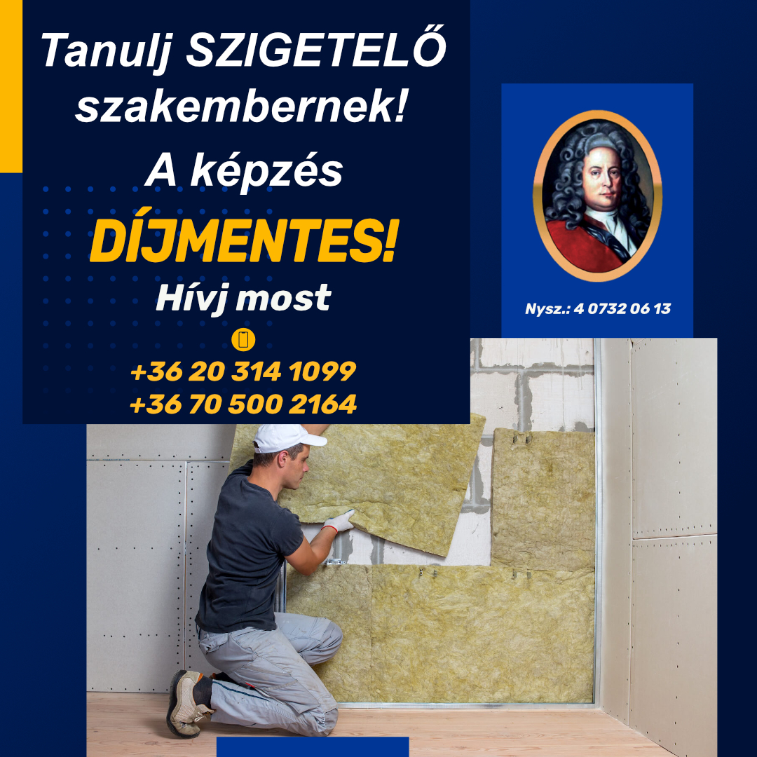 Keresett szakma, biztos megélhetés! A szigetelő szakemberekre minden építkezésen szükség van – legyél te is a profik között! Ha bírod a kihívásokat és szívesen dolgozol kézzel, vár rád a 12 hónapos képzés, indulás: 2025 szeptemberében. Ne maradj le!