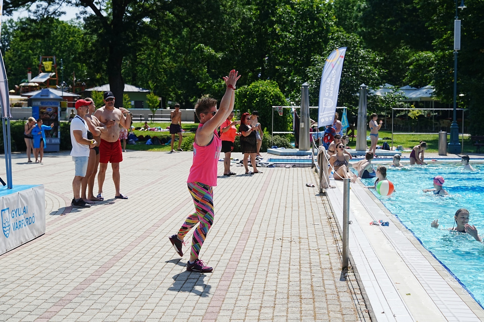 Stefanovits Balázs, a Gyulai Várfürdő marketingese elmondta: az érdeklődőket egész héten várták a strandon, a mai napon vízi zumba és egy fiatal DJ színesítette a programot.