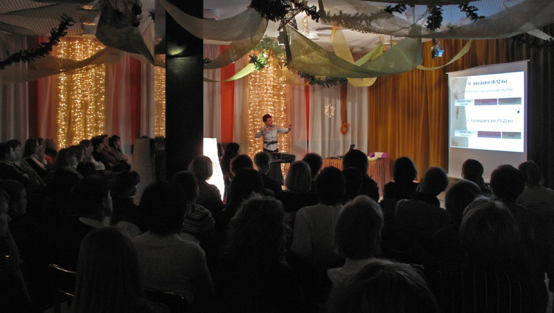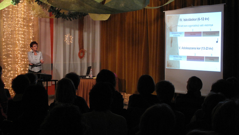 Dr. Szicsek Margitot sokan ismerhetjük. Lehet, hogy segítségért fordultunk már hozzá – párkapcsolatbeli problémákkal legszerencsésebb párban –, lehet, hogy tanárunk volt a főiskolán, és lehet, hogy csak mások elmondásából ismerjük. Bárhogyan, az bizonyos, hogy csupa jó benyomást szerezhettünk kivételes személyiségéről, mint ahogyan e három előadáson is. A másfél órákat tartó estekre dalokat és ajándék emlékeztetőket is hozott nekünk. Kiváló szakember, rendkívüli empátiával, nyitottsággal és humorral. Ez utóbbi az, amit egyébként ő a házasságban, a konfliktuskezelésben a legfontosabbnak tart – ha tanácsot adna párválasztóknak, ez lenne a legelső: olyat válassz, akinek van humora!
