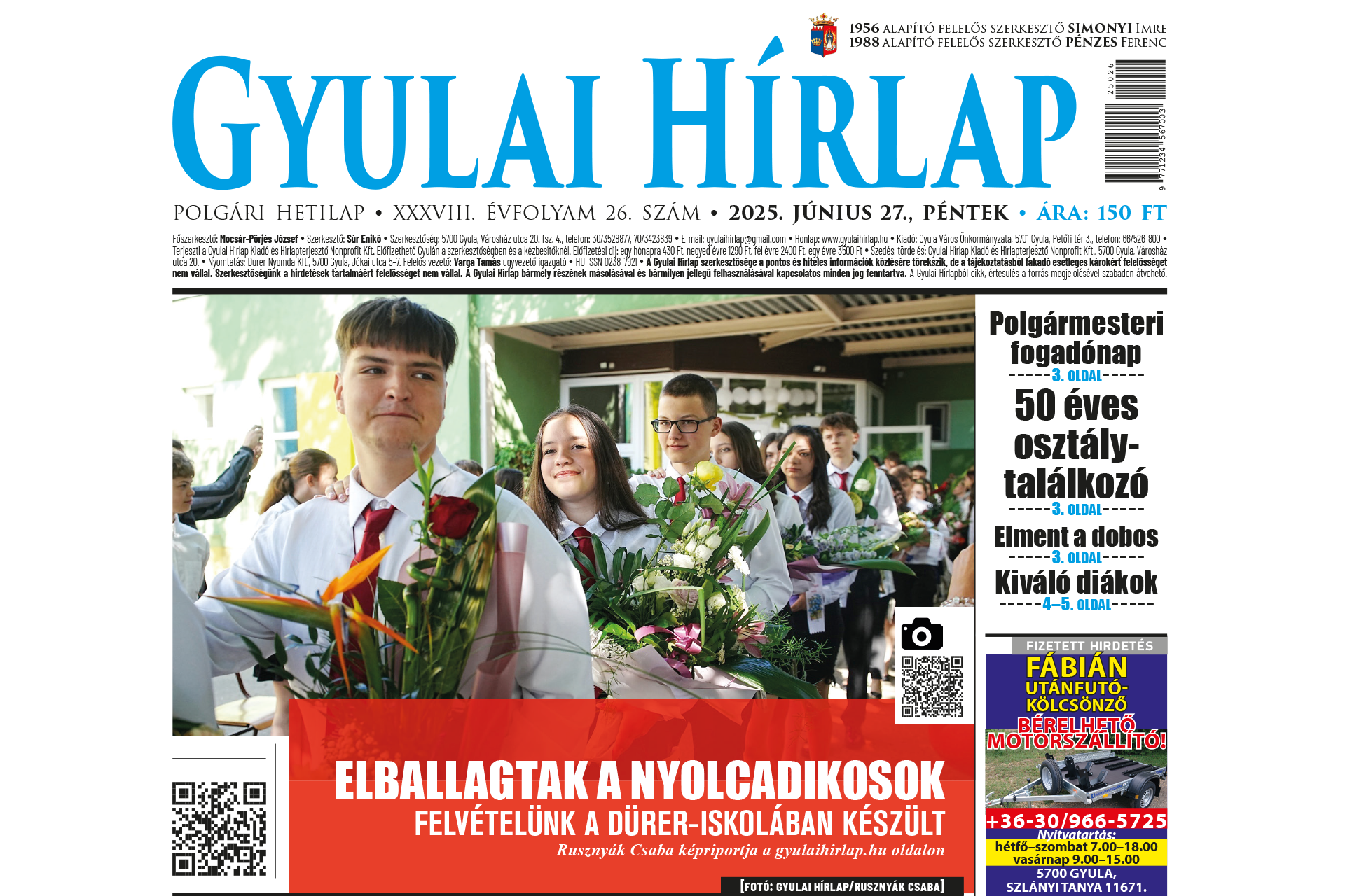 Itt a legfrissebb Gyulai Hírlap! Keresse az újságárusoknál!