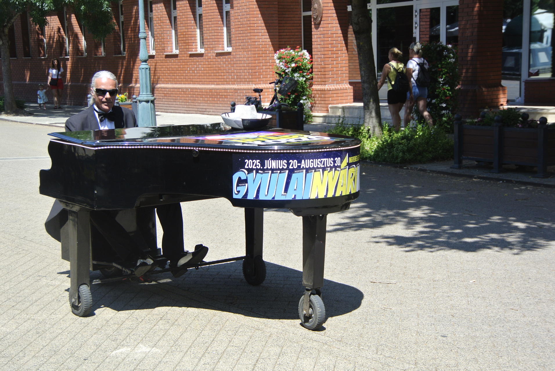 A Gyulai Nyári Korzót Mr. Piano, azaz Vágó János indította el jelképesen a guruló zongorájával.