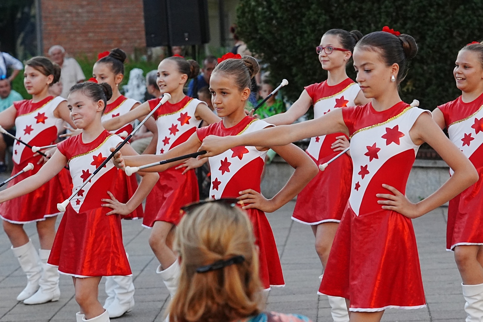 A Gyulai Grácia Mazsorett Együttes tartott bemutatót a Harruckern téren