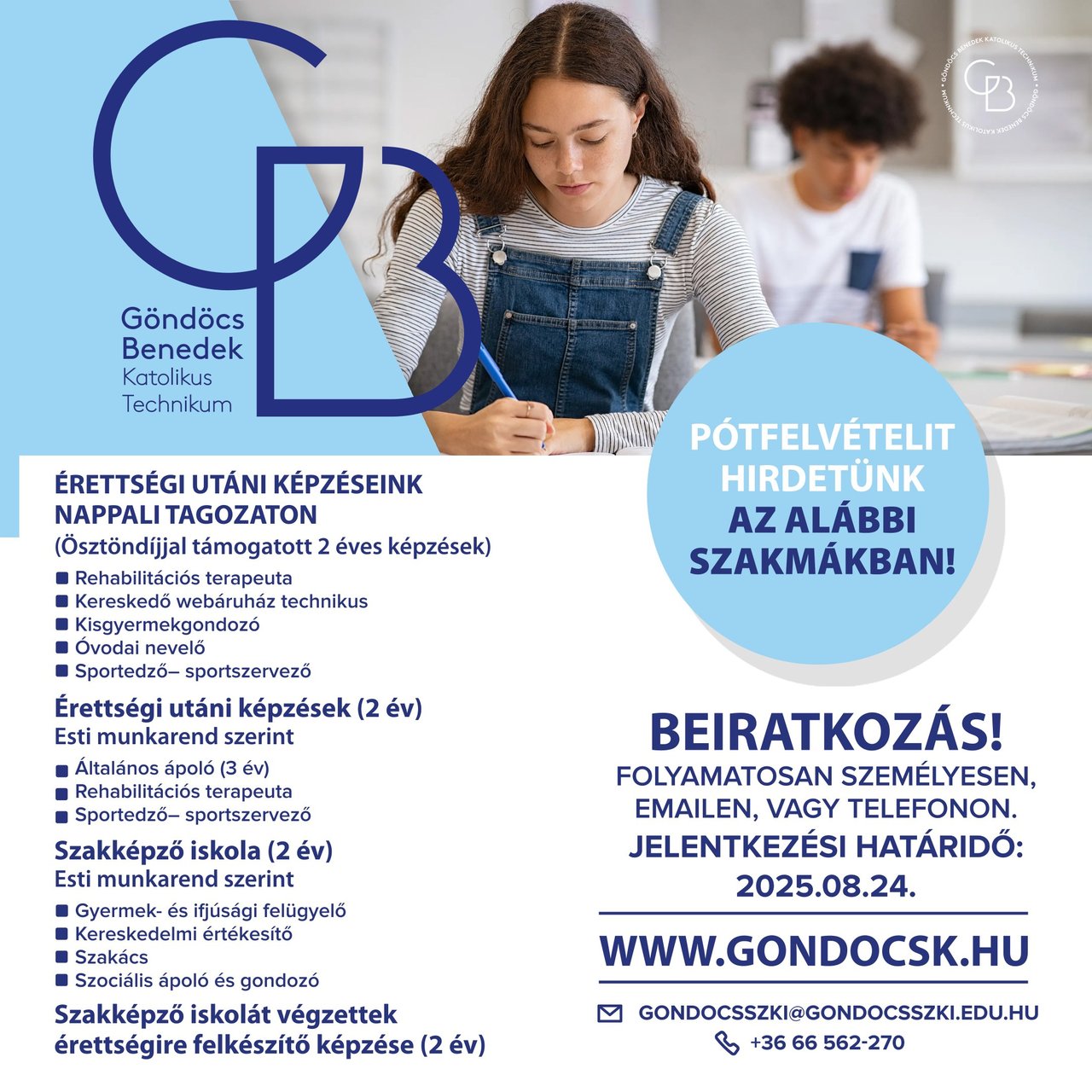 Pótfelvételit hirdet a Göndöcs Benedek Katolikus Technikum