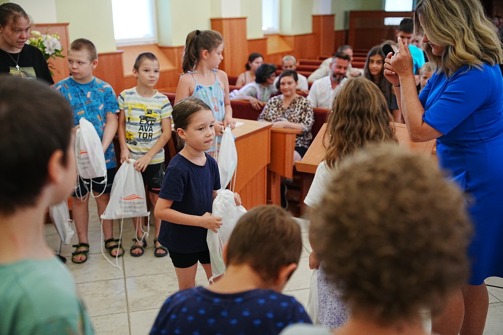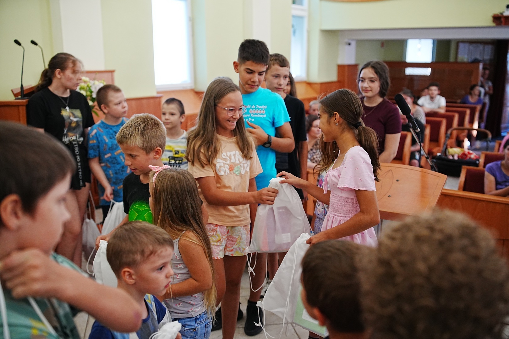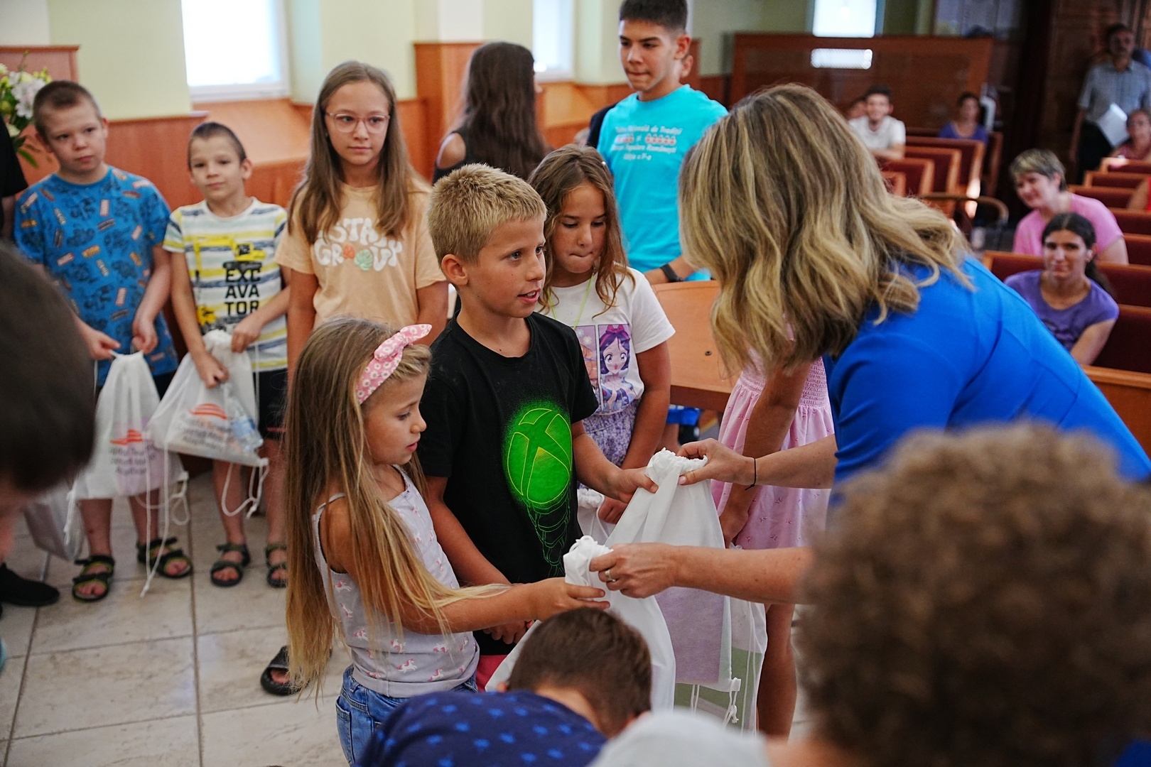 Ötvenhét rászoruló gyermek kapott adománycsomagot augusztus 18-án a Baptista Tevékeny Szeretet Misszió Alapítvány és a Gyulai Szociális Szolgáltató Központ idei tanszergyűjtő kampányának záróeseményén, a fürdővárosi baptista imaházban.