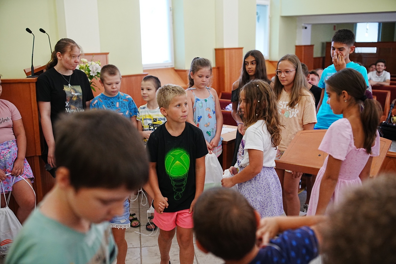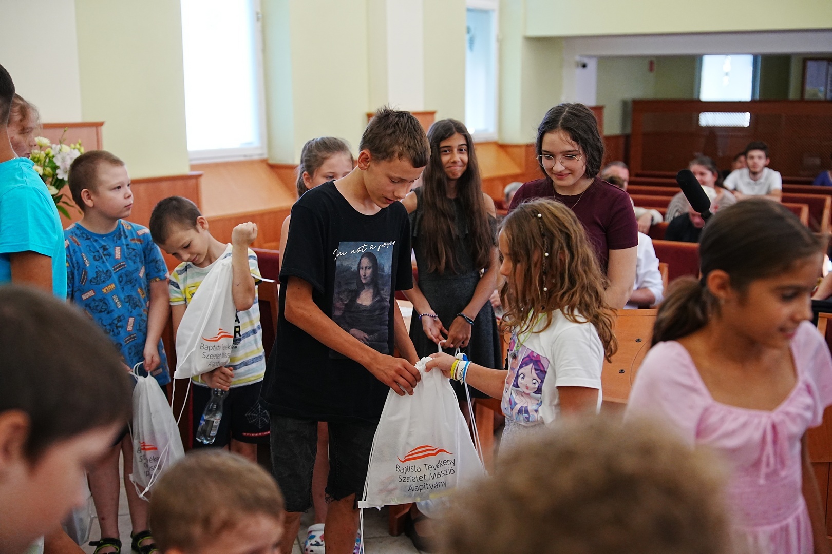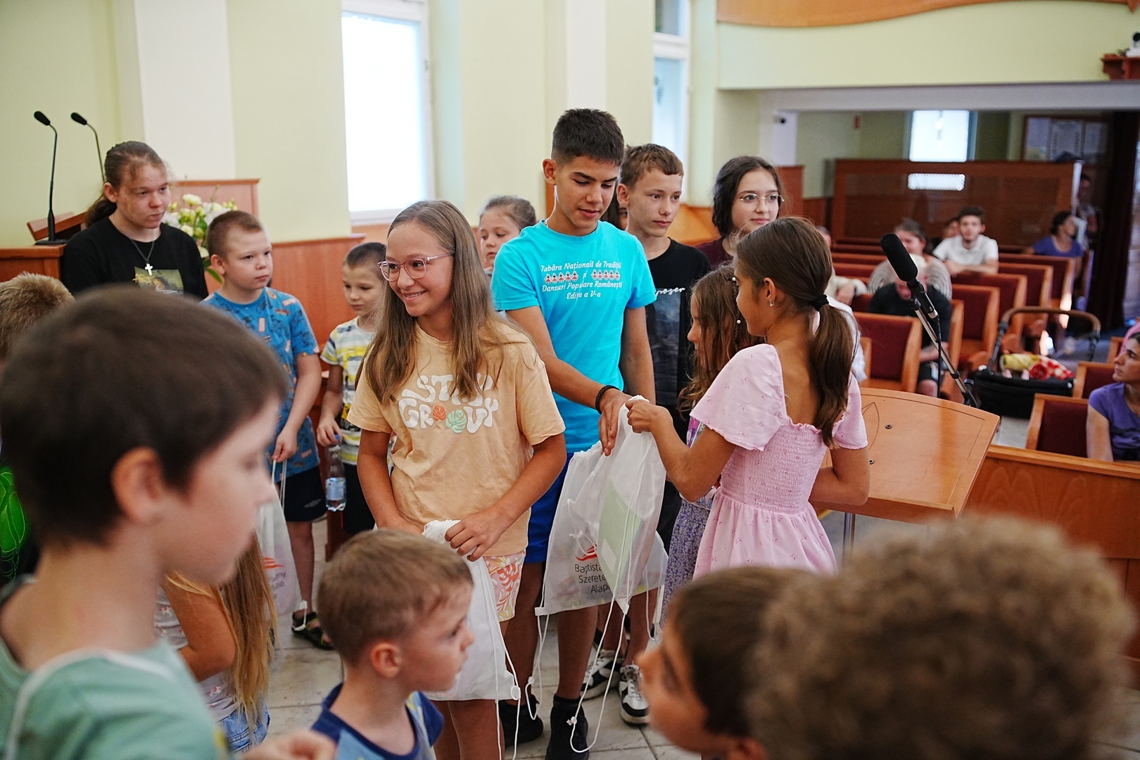 Ötvenhét rászoruló gyermek kapott adománycsomagot augusztus 18-án a Baptista Tevékeny Szeretet Misszió Alapítvány és a Gyulai Szociális Szolgáltató Központ idei tanszergyűjtő kampányának záróeseményén, a fürdővárosi baptista imaházban.