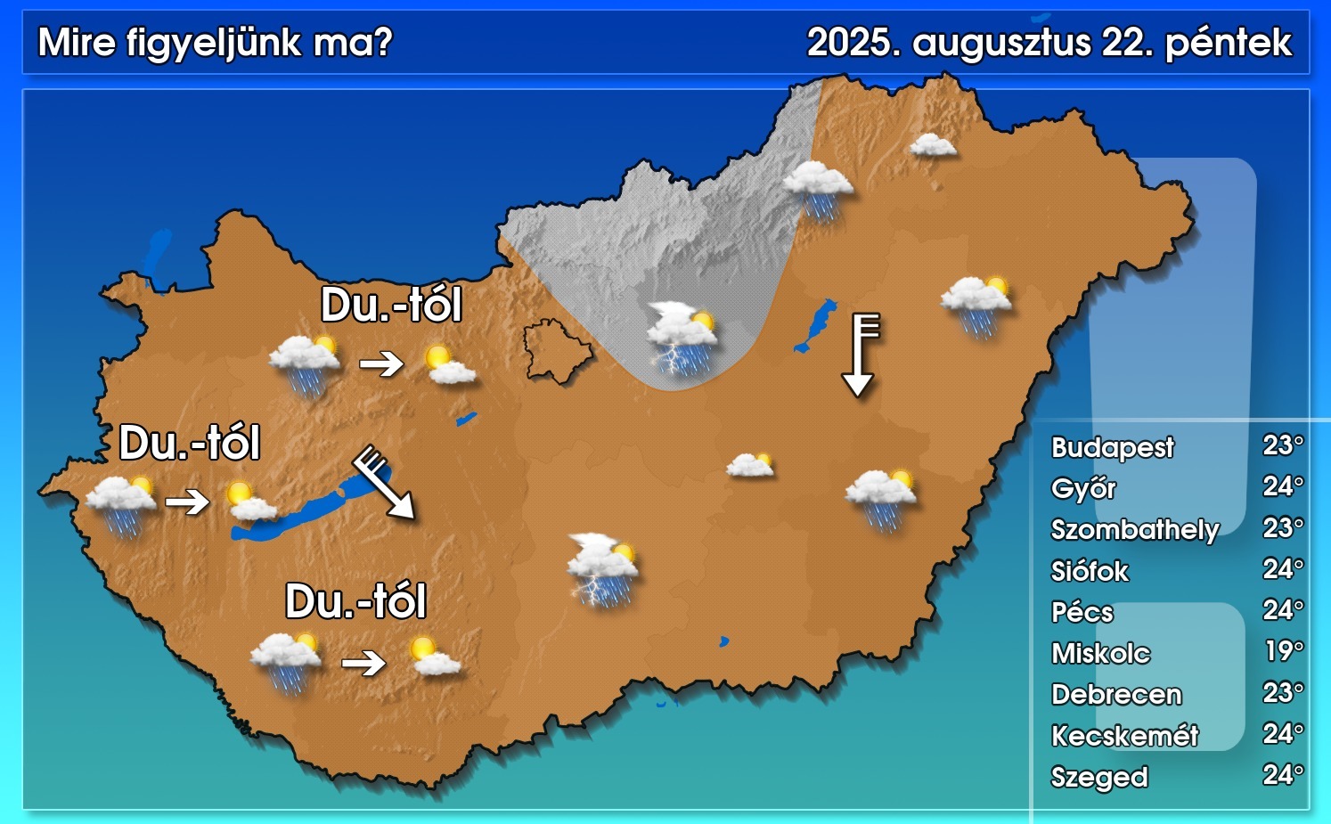A Lukas névre keresztelt légörvény ma még időjárásunk alakítója lesz. Főként a nap első felében alapvetően sok felhő ígérkezik, és újabb hullámokban fordulhat elő eső, zápor, zivatar – de várhatóan nem mindenütt, és a csapadék mennyiségi eloszlása továbbra is igen egyenlőtlennek ígérkezik. Délutántól viszont északnyugat, nyugat felől csökken a csapadékhajlam, ezzel együtt egyre nagyobb területen kezdődik meg a felhőzet felszakadozása, csökkenése. A narancssárgával jelzett zónában nagy területen megerősödik az északnyugati, északi szél, zivatarok környezetében viharos lökések is lehetnek. A csúcsérték ma már mindenütt 30 fok alatt várható, sőt, elsősorban Borsodban helyenként akár 20 fok alatt is maradhat – közölte a HungaroMet NZrt. közösségi oldalán.