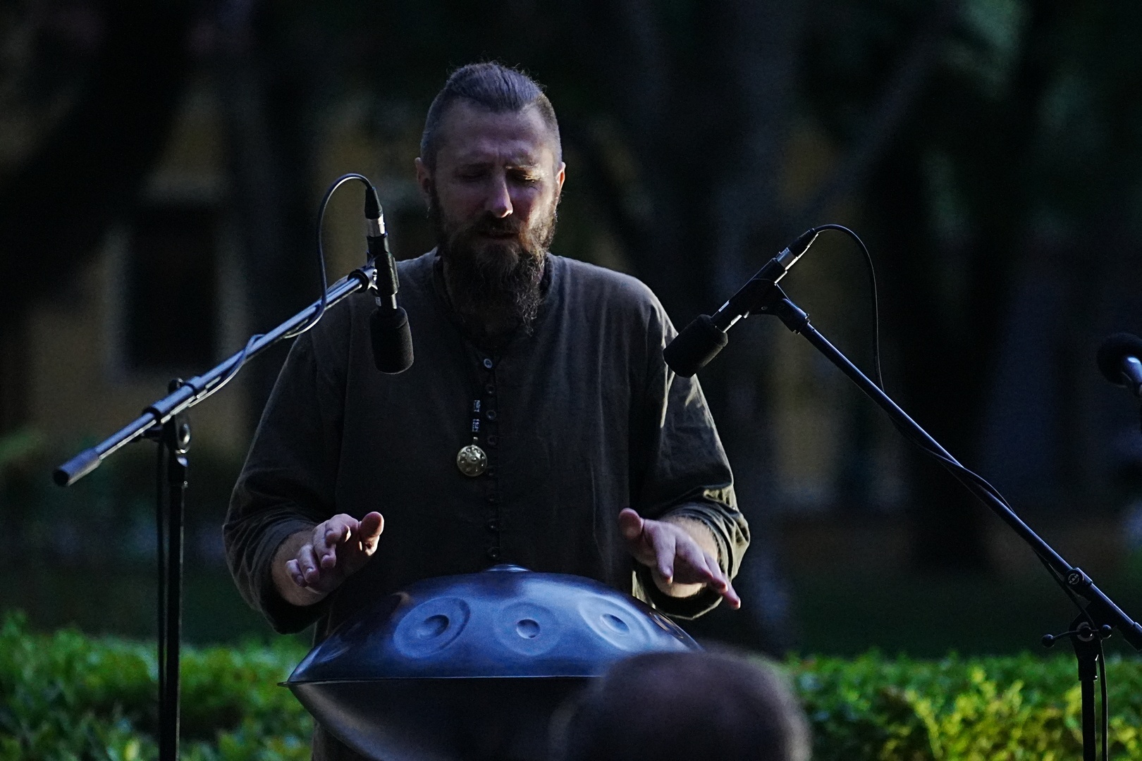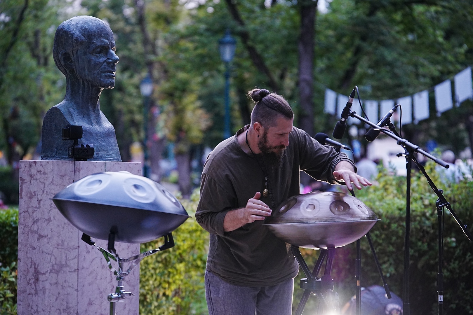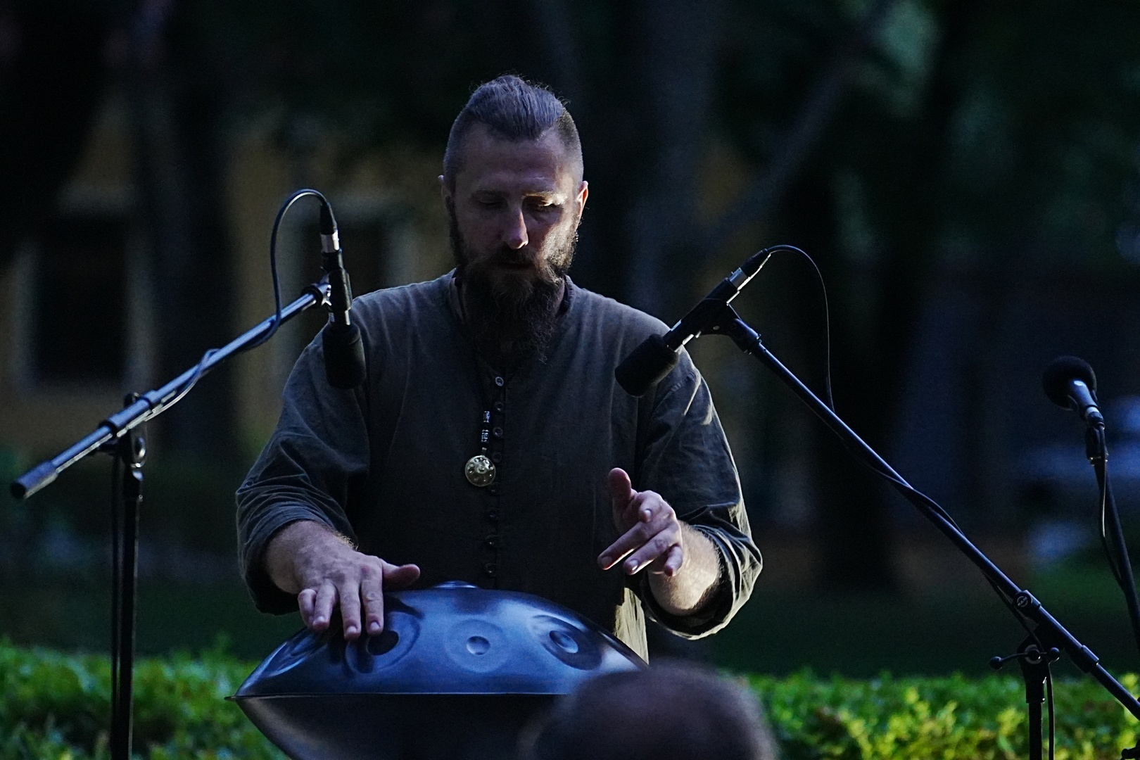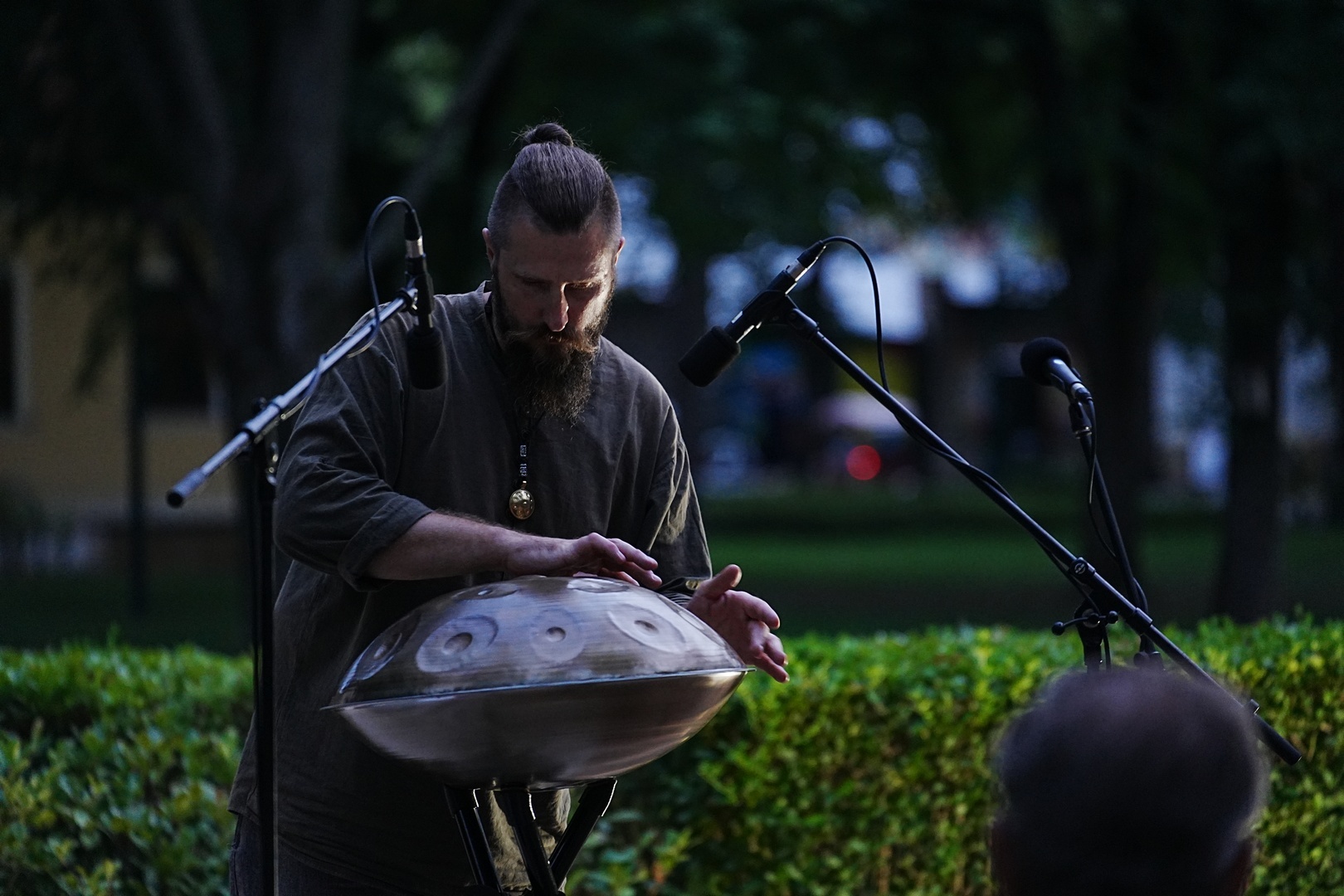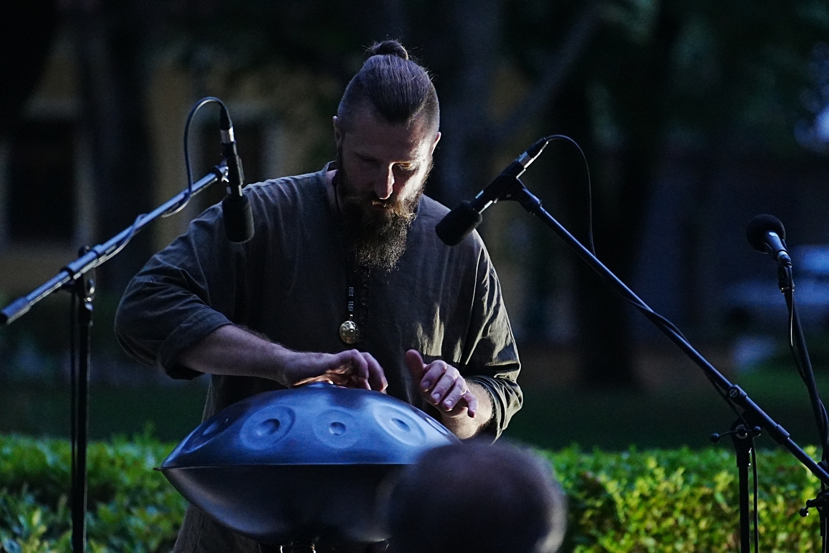 Király Zsolt Szkíta Napfarkas dallamdob-előadása a Szent Miklós parkban