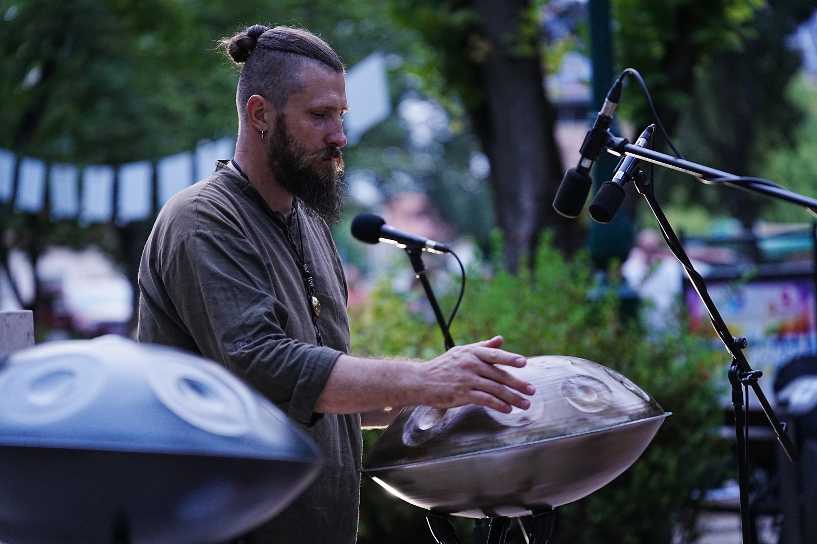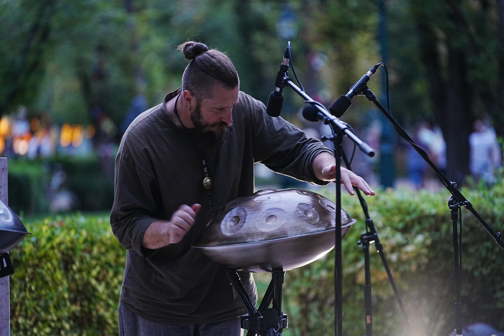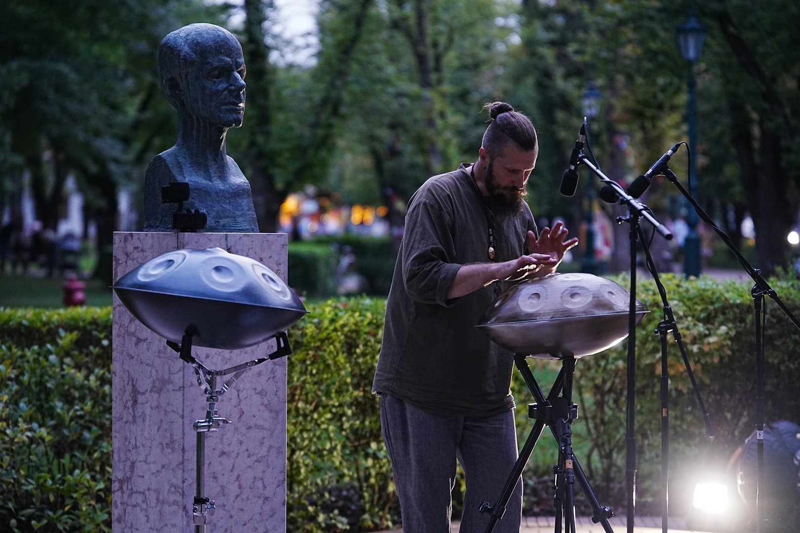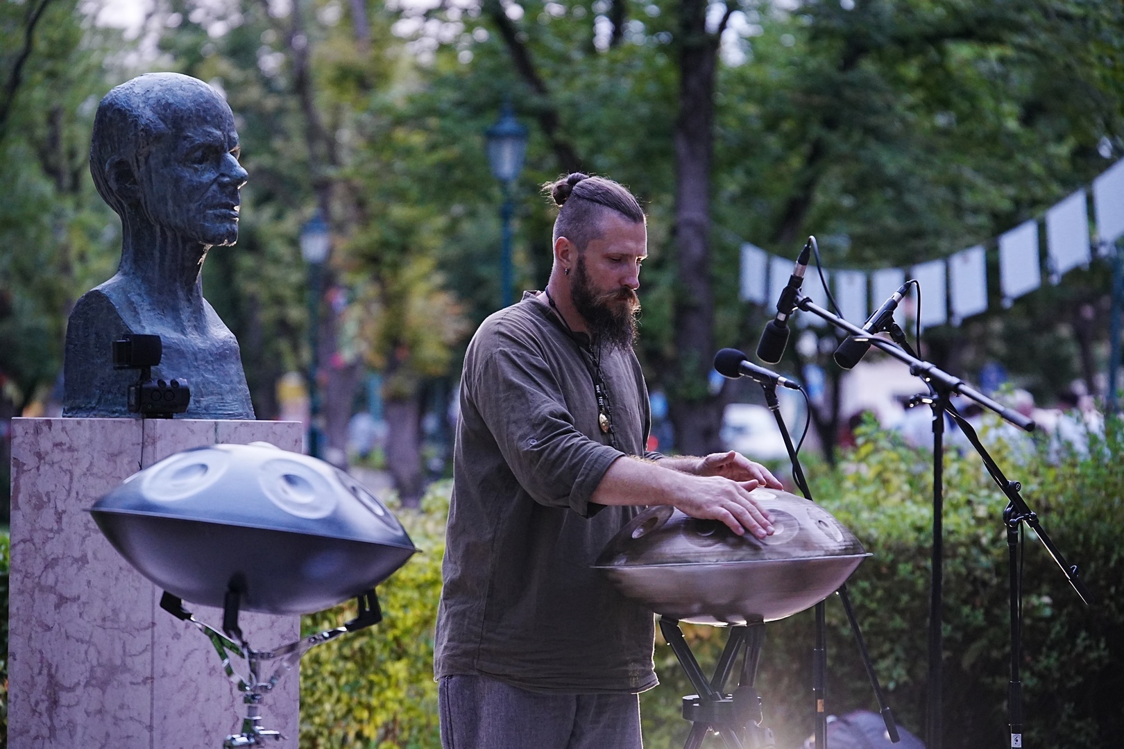 Király Zsolt Szkíta Napfarkas dallamdob-előadása a Szent Miklós parkban