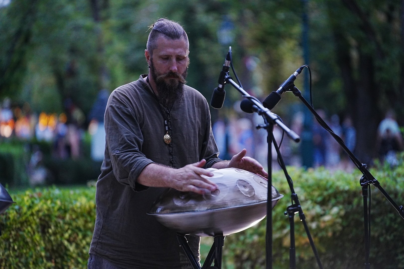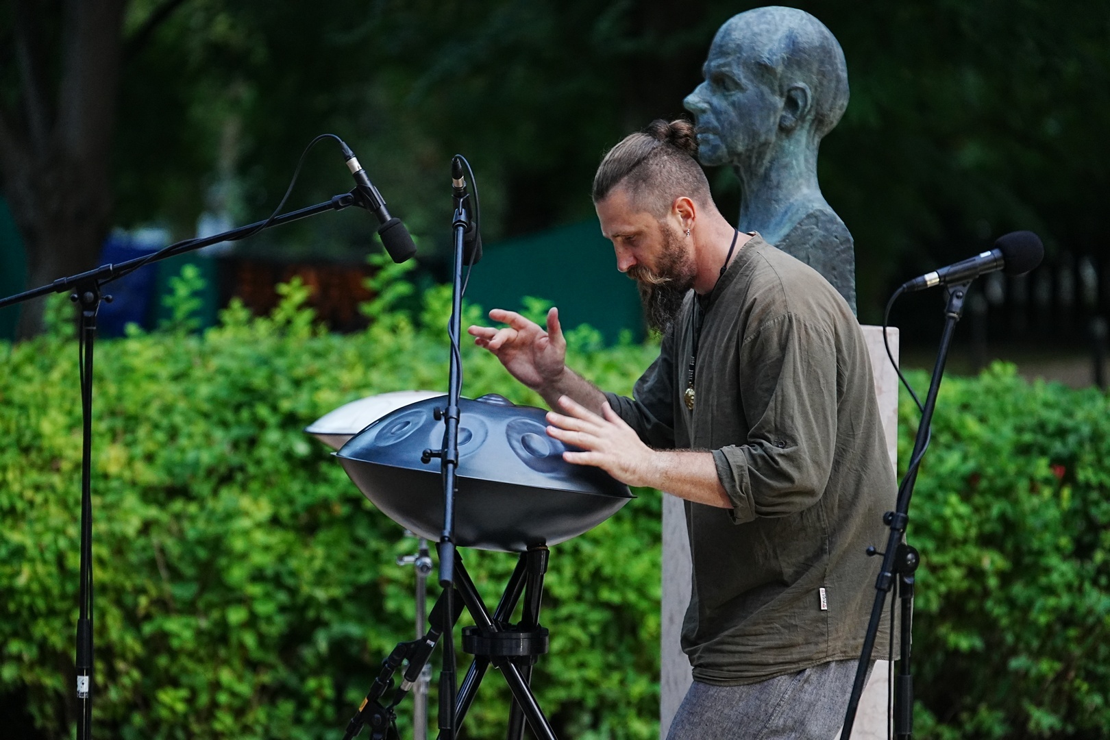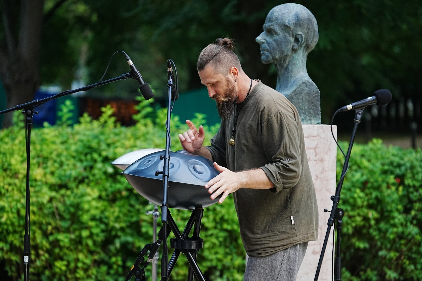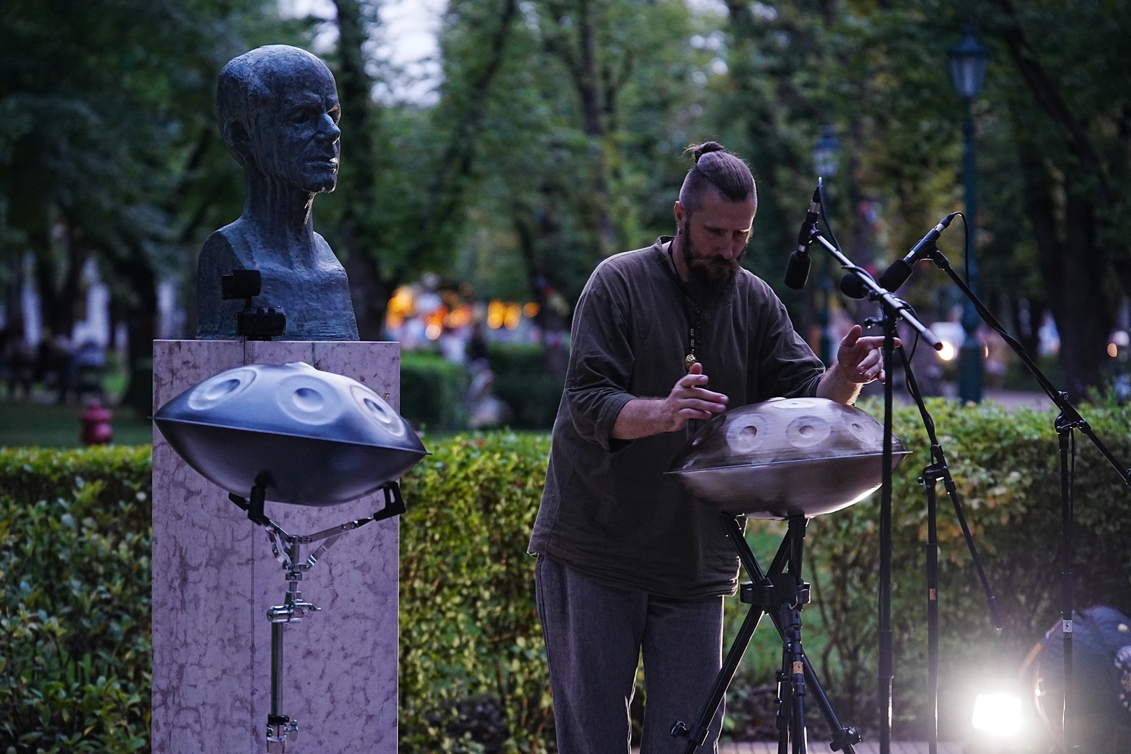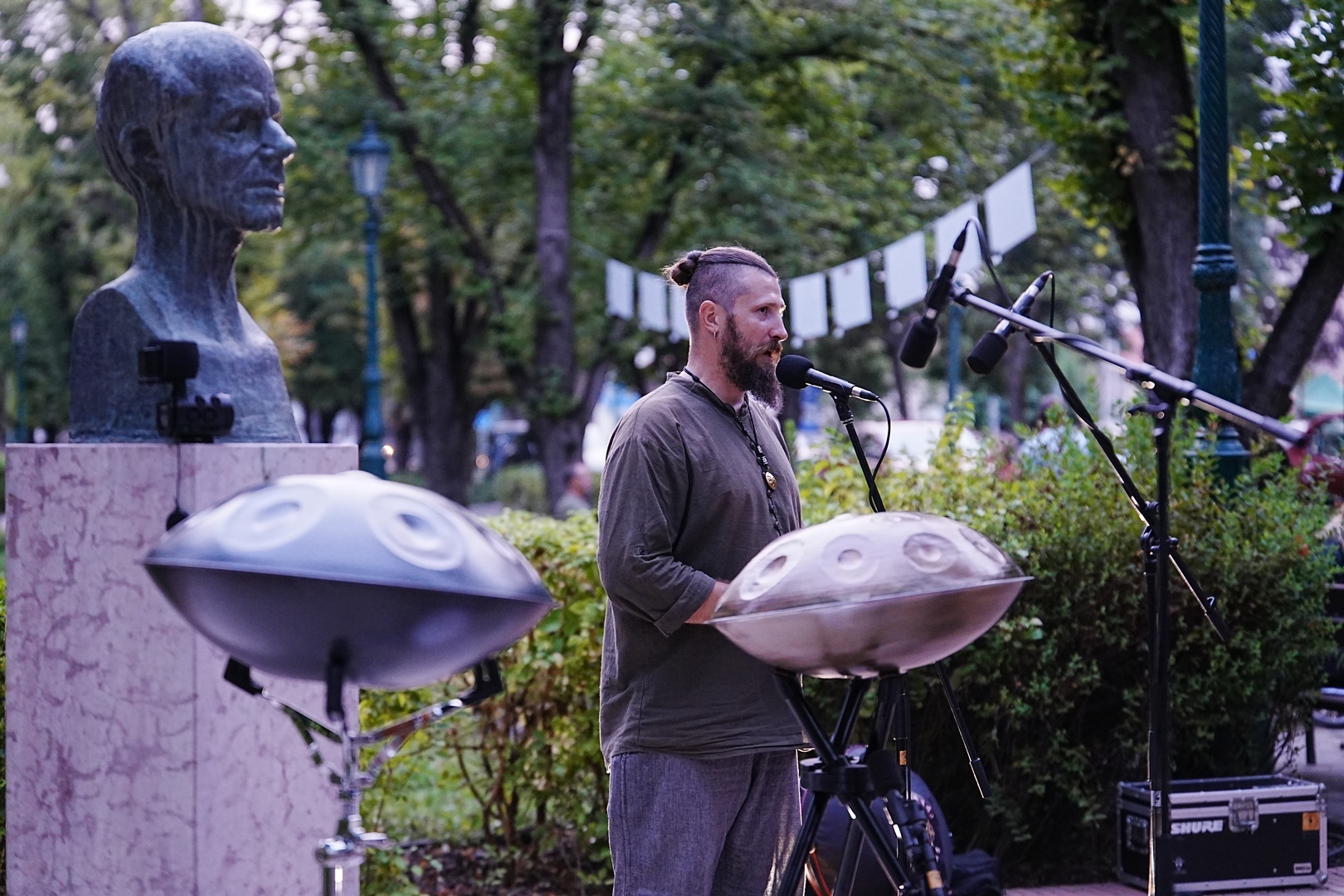 Király Zsolt Szkíta Napfarkas dallamdob-előadása a Szent Miklós parkban