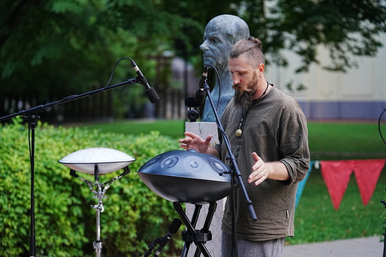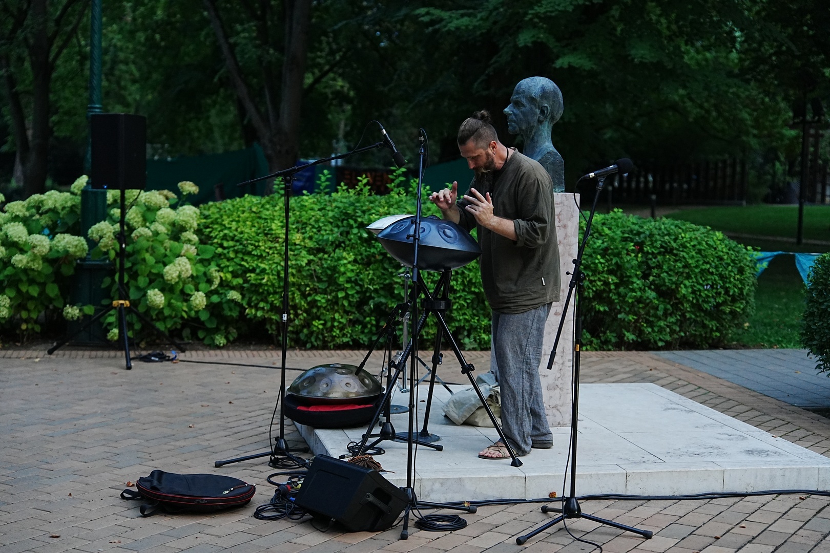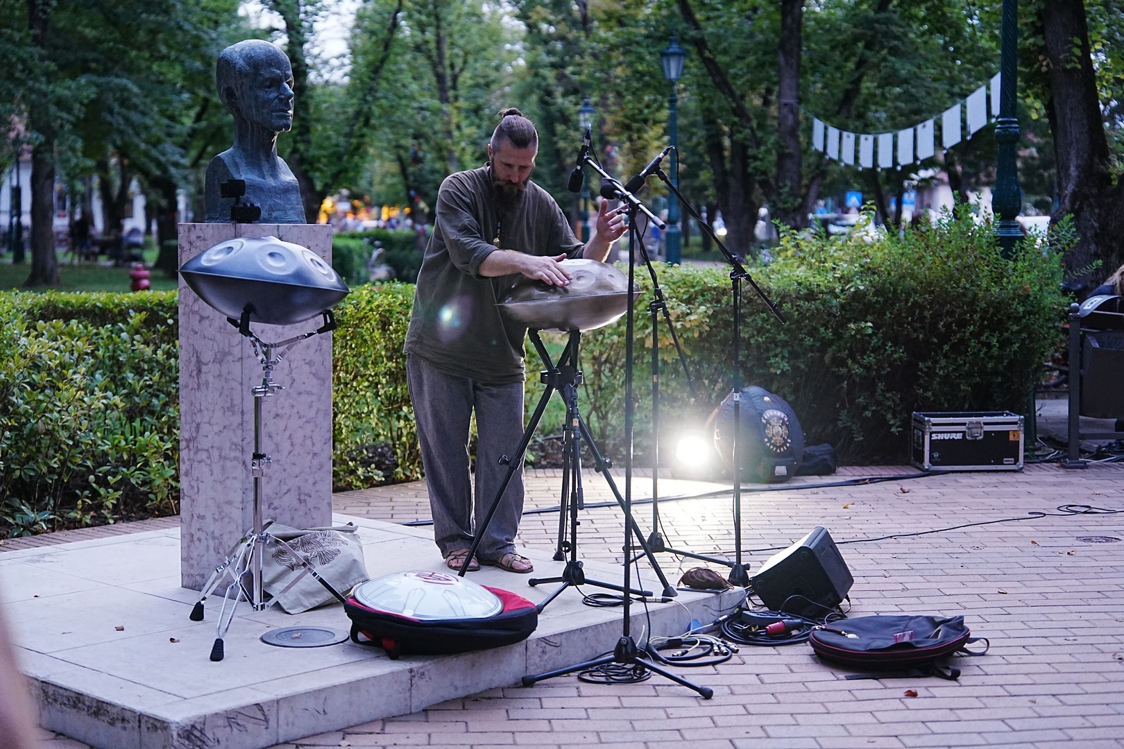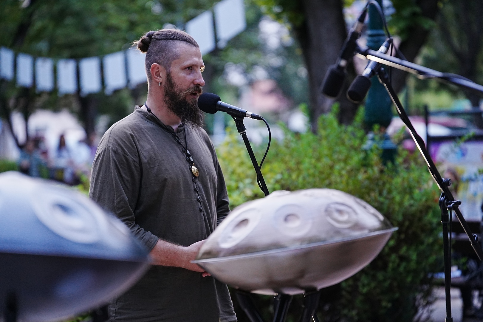 Király Zsolt Szkíta Napfarkas dallamdob-előadása a Szent Miklós parkban