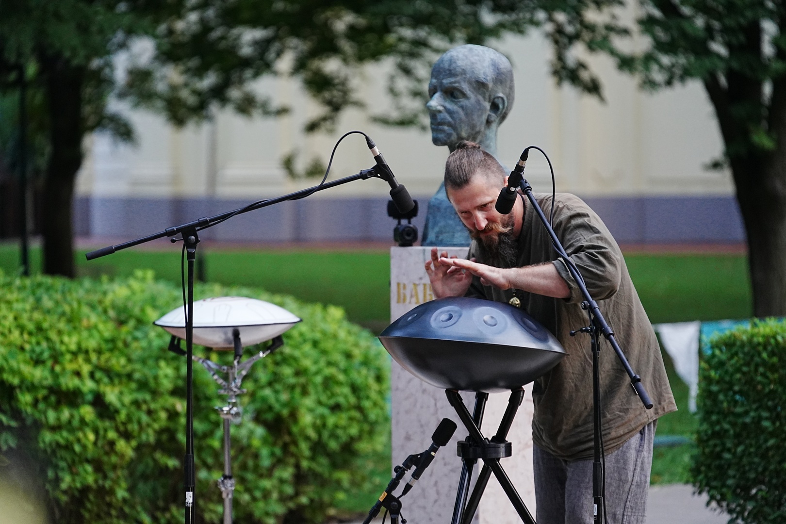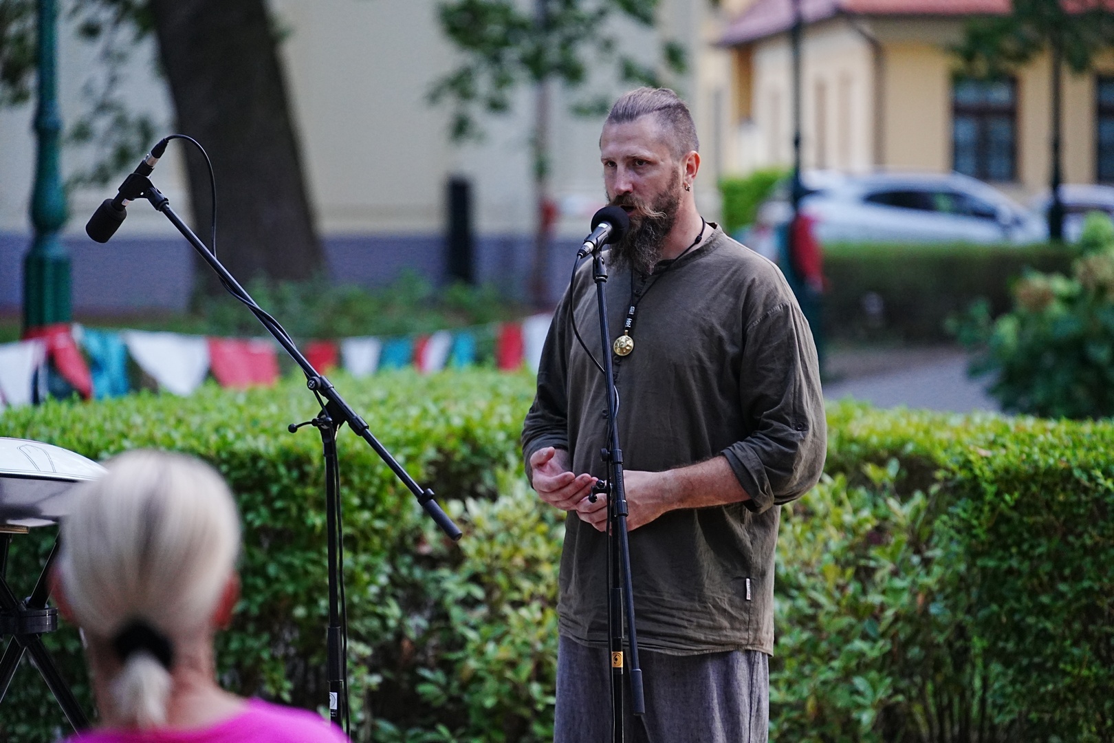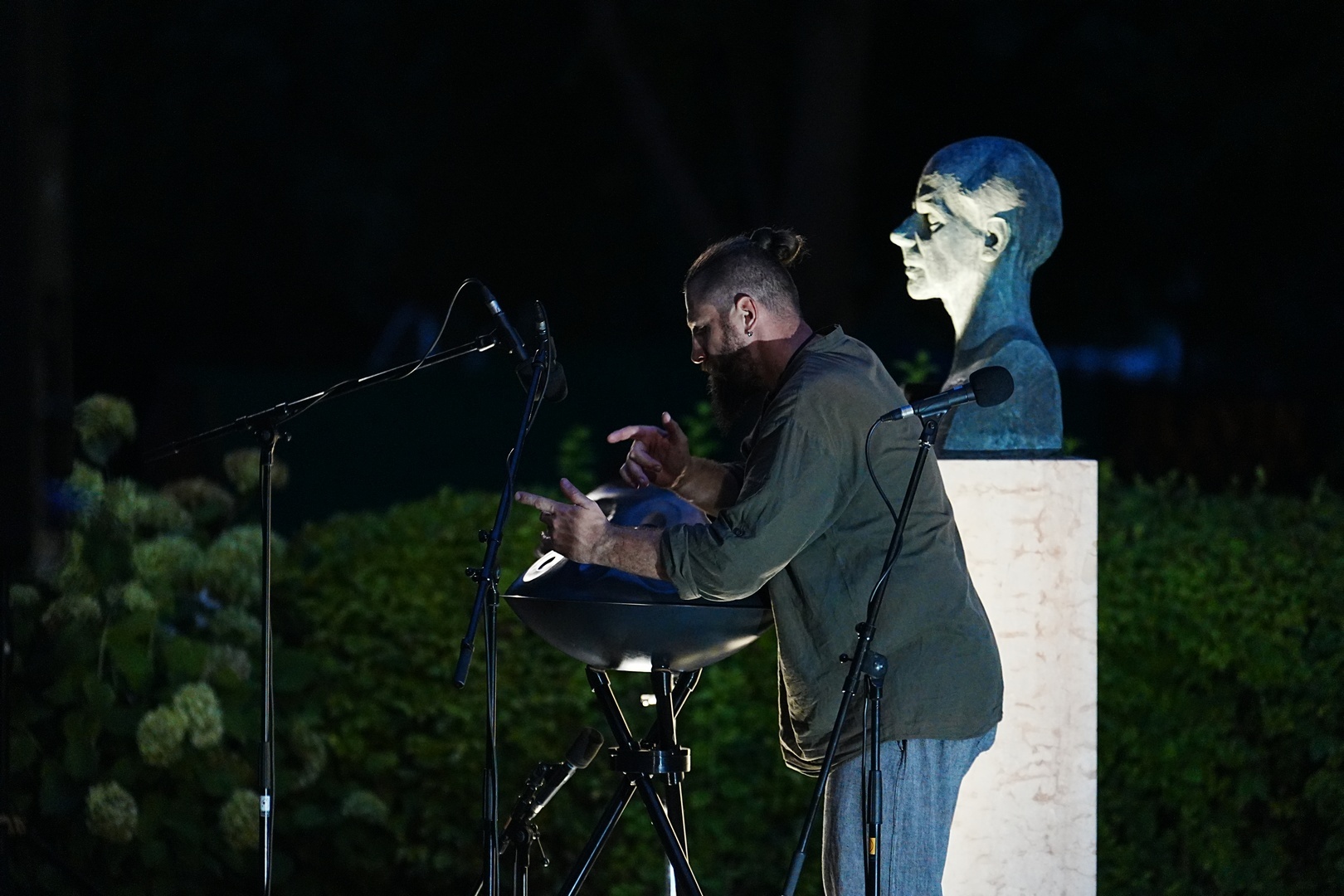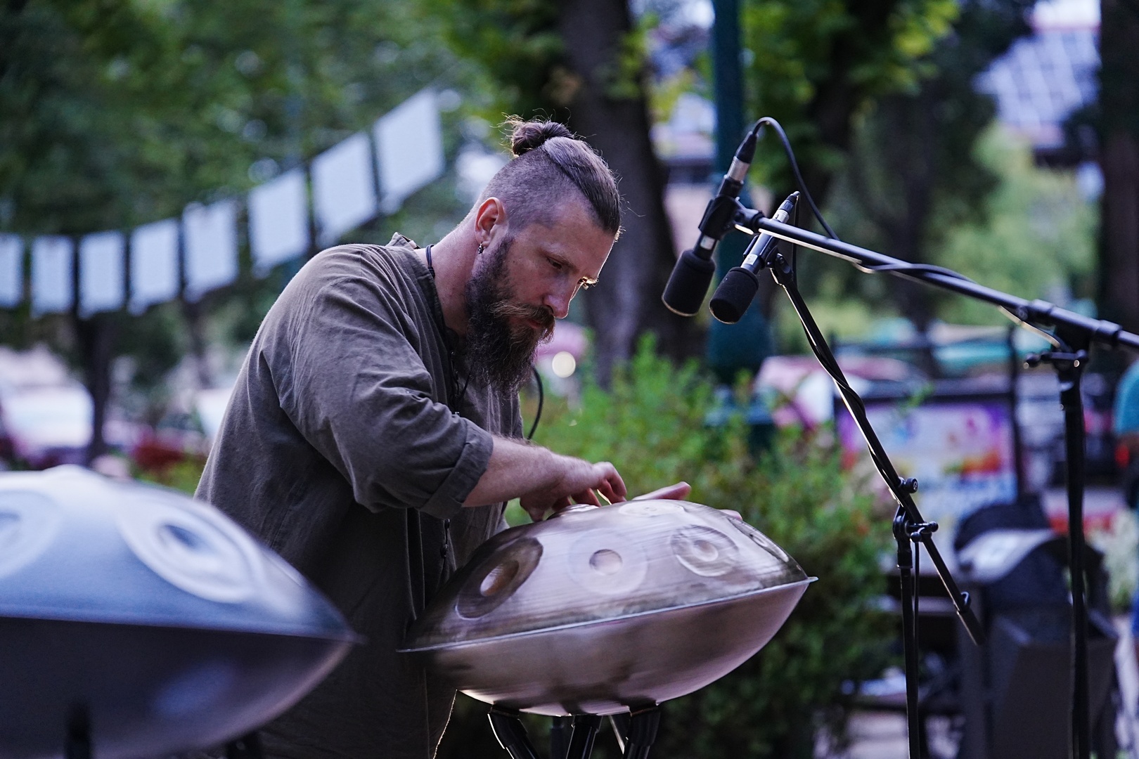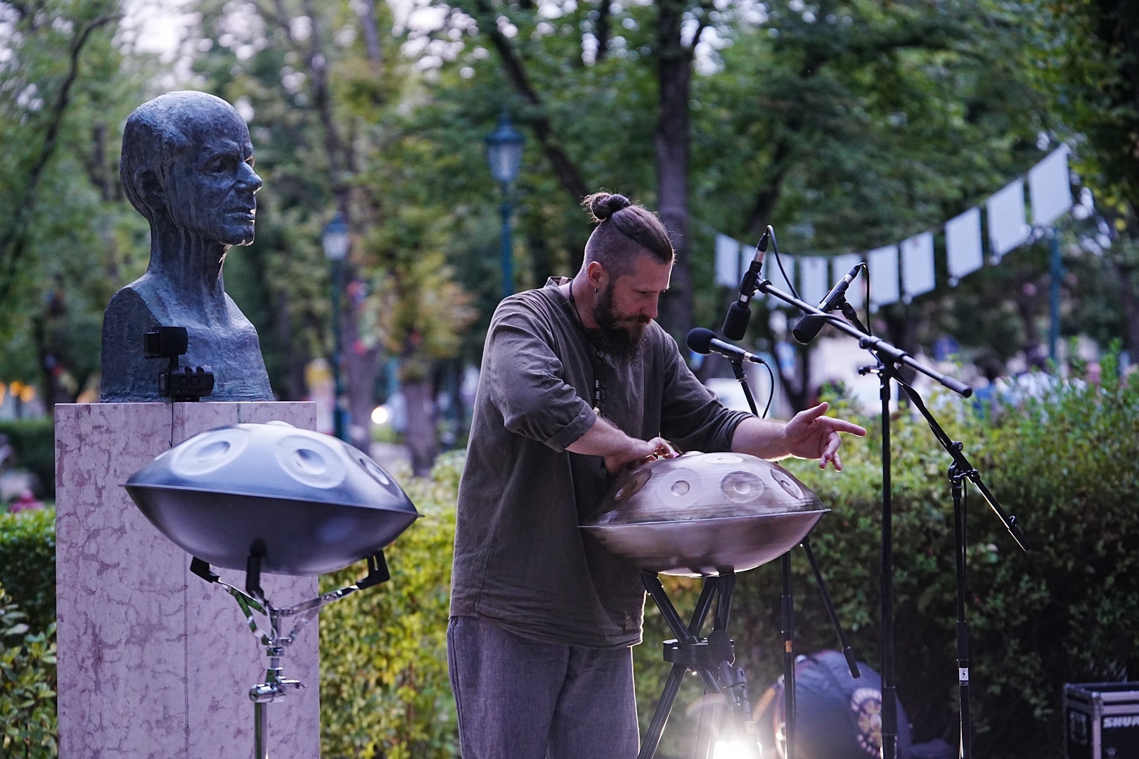 Király Zsolt Szkíta Napfarkas dallamdob-előadása a Szent Miklós parkban