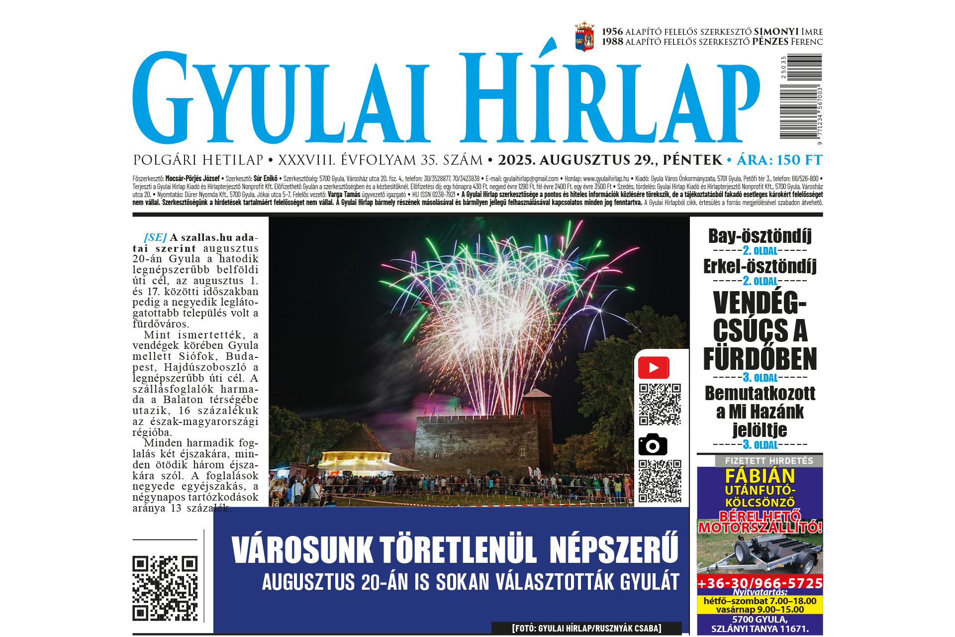 GYULAI HÍRLAP • HÍREK • 2025. augusztus 31. 13:00