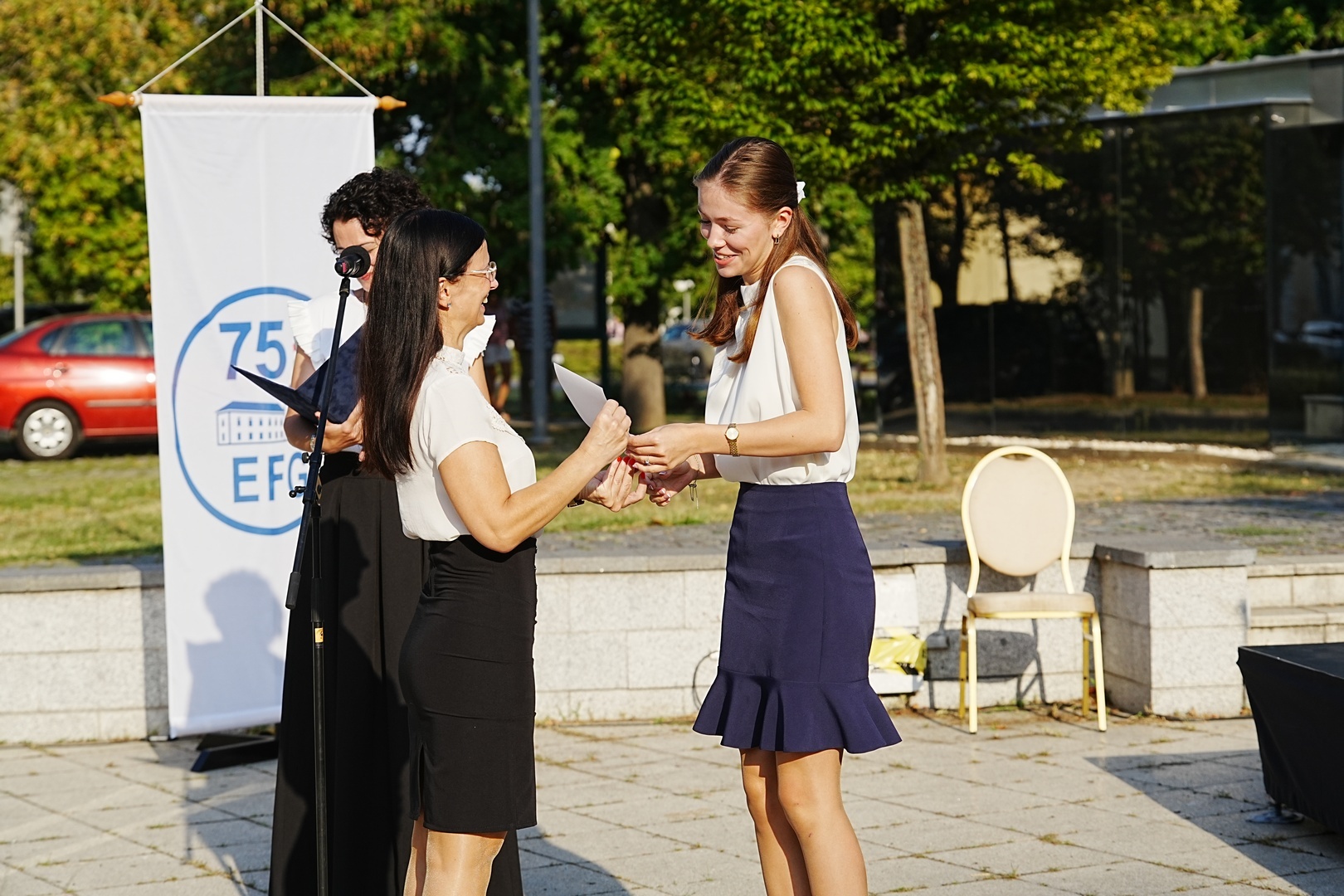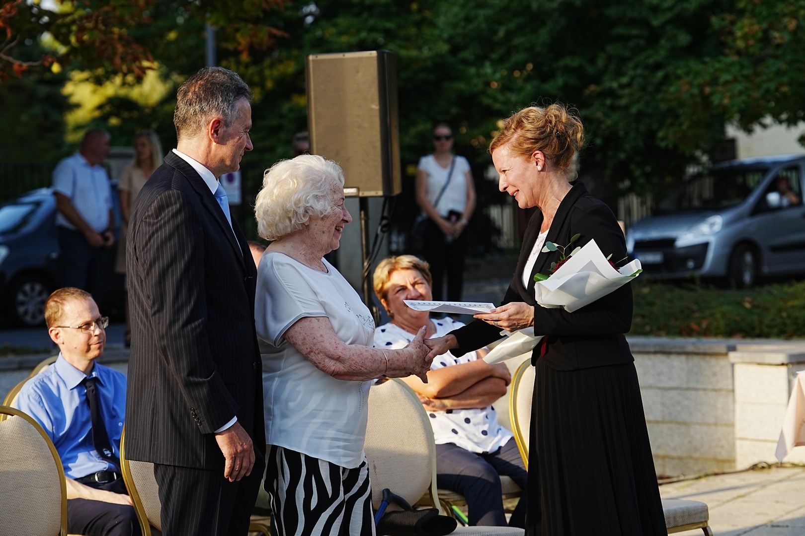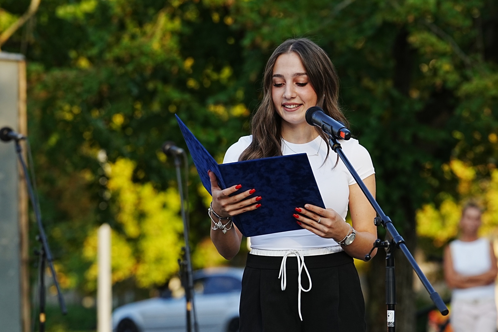 Az ünnepségen elismerték Kallós Esztert, aki az iskola diákönkormányzatának pályázatára jelentkezve tervezett egy zászlót az évfordulóra.