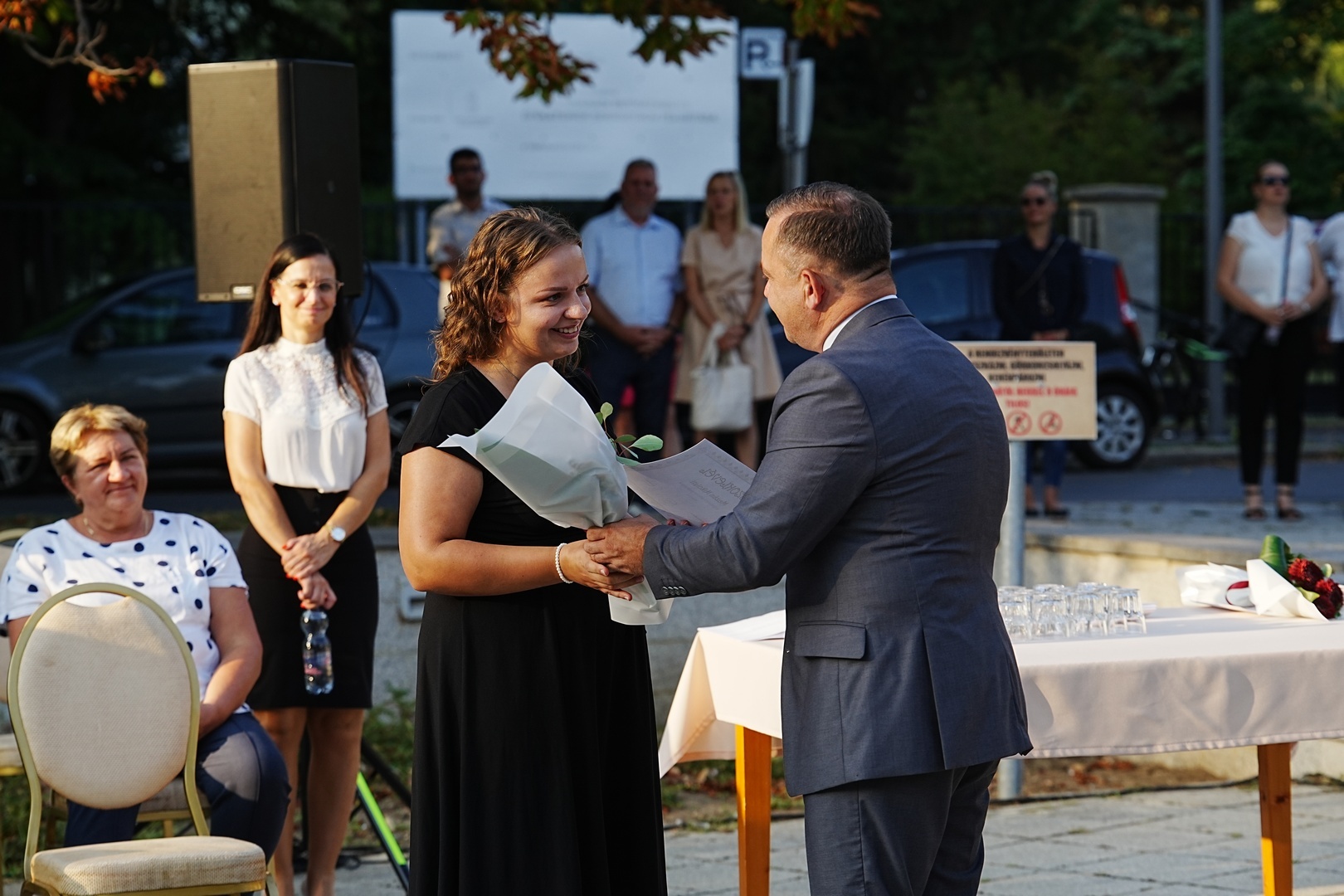 Görgényi Ernő polgármester köszönetet mondott az elmúlt évtizedekben az intézményben tanító pedagógusoknak, valamint mindenkinek, aki valamilyen munkakörben a gimnáziumban dolgozott az eltelt időszakban.