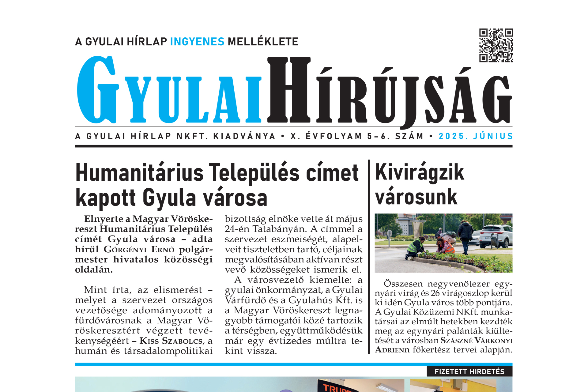 Hirdessen ön is a Gyulai Hírújság legfrissebb lapszámában!