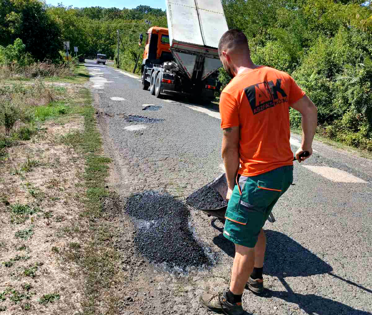 A cég megbízásából a gyulai illetőségű Aszfalt-Közmű Szolgáltató és Kereskedelmi Kft. munkatársai 530 méteres szakaszon martak, kátyúztak, és öt tonna melegaszfaltot dolgoztak be az útba.