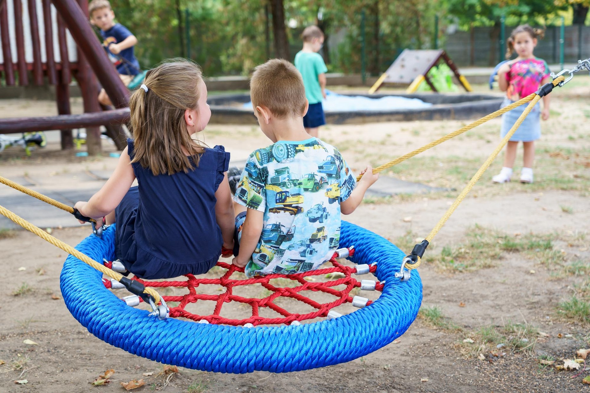 A Gyöngyvirág téri játszótérre kétüléses, lapülőkés fémhinta, a Bajcsy-Zsilinszky utcai óvoda udvarára kosaras fém minifészekhinta került.