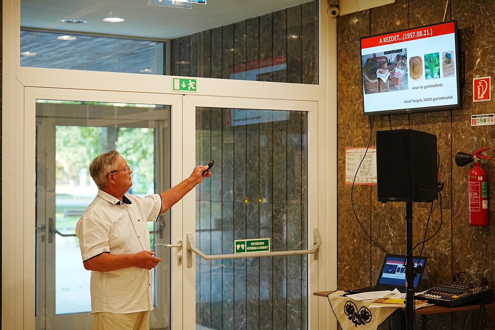 A művelődési központban felidézte: az 1950-es években a nagy munkanélküliség enyhítésére az országban sorra jöttek létre a háziipari szövetkezetek, Gyulán 1957-ben alakult meg 121 fővel, Farkas Sándor elnökségével, a Gyulai Háziipari Termelőszövetkezet. A tagok egyszerű emberek voltak, akik a szüleiktől tanultak kötni, horgolni, fonni, hímezni, szőni, és sok varrónő is volt köztük. Többen ismerték a kalotaszegi, torockói motívumokat és a békési szűcshímzést – elevenítette fel.