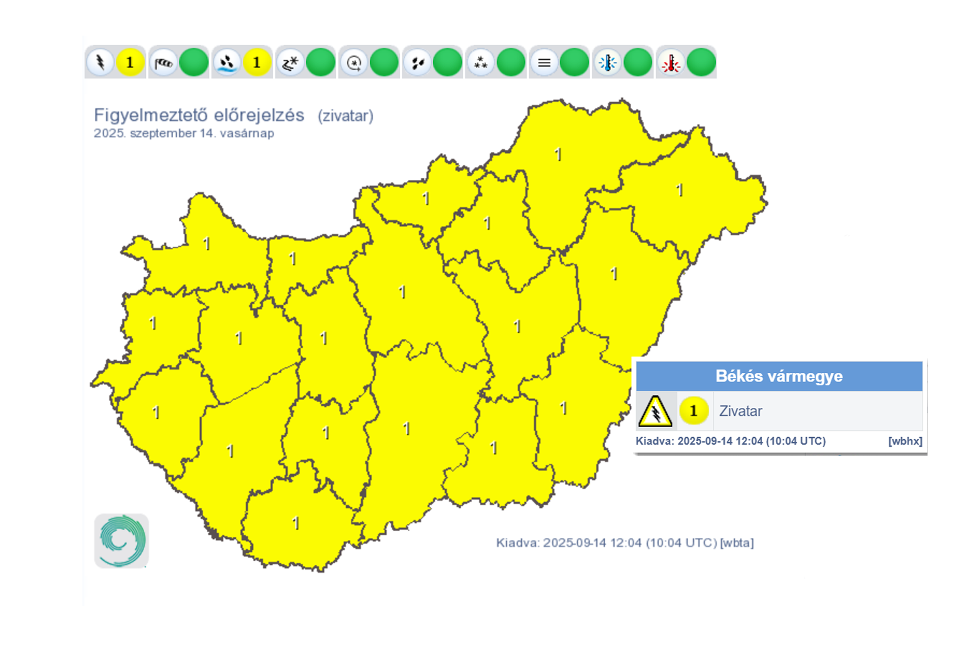 Vasárnap egy hidegfront előterében, illetve a hidegfront mentén több hullámban alakulhatnak ki zivatarok. Délelőtt, illetve kora délutánig egy kelet, északkelet felé helyeződő záporos csapadéktömbben fordulhatnak elő zivatarok, jellemzően intenzív csapadék (~20-30 mm), esetleg kisebb szemű jég és szélerősödés kíséretében. A déli óráktól nyugat felől már a hidegfront mentén újabb hullámban alakulhatnak ki zivatarok, nagyobb számossággal az ország déli felén. Ezek környezetében továbbra is intenzív csapadék (20-25 mm), néhol felhőszakadás (>25-30 mm), jég (~1-2 cm), illetve viharos széllökés (~60-80 km/h) fordulhat elő. Várhatóan késő estére megszűnnek a zivatarok, illetve kelet felé elhagyják az országot. Vasárnap éjfélig területi átlagban helyenként a 20 mm-t is meghaladhatja a lehulló csapadék mennyisége, valamint ismétlődő záporokból, zivatarokból egy-egy helyen akár 40 mm feletti értékek is összegyűlhetnek – írta a met.hu.