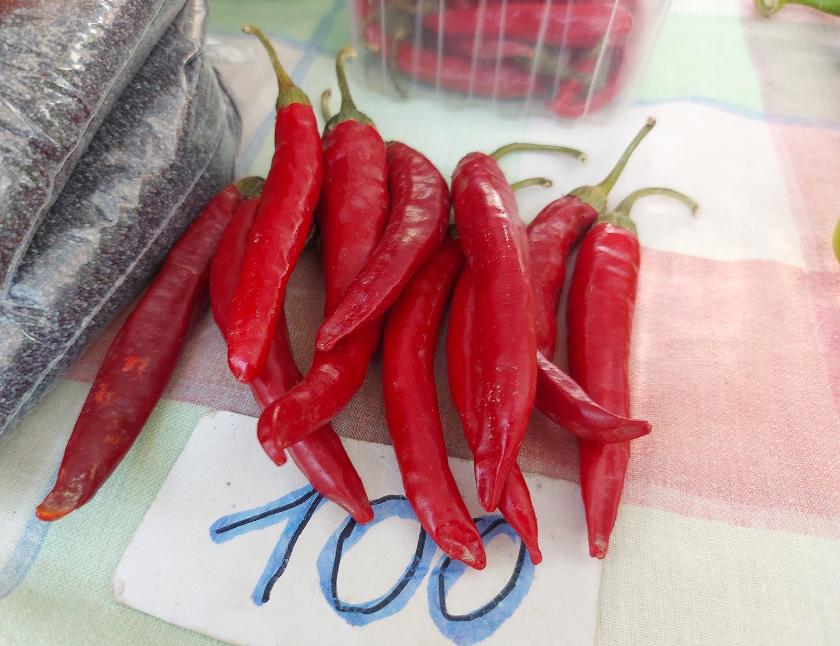 Kis méretű piros erős paprikát egy standnál kínáltak a gyulai piacon ottjártunkkor, darált paprikát azonban több árusnál is lehetett vásárolni.