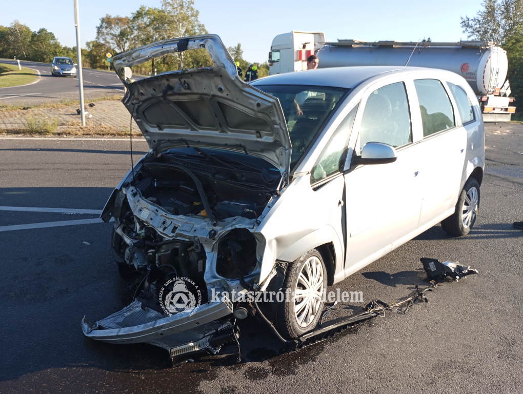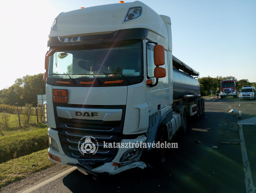 Személyautó és veszélyes anyagot szállító kamion ütközött össze szombat délután Gyulán, a 44-es főúton. Az eset során személyi sérülés nem történt.