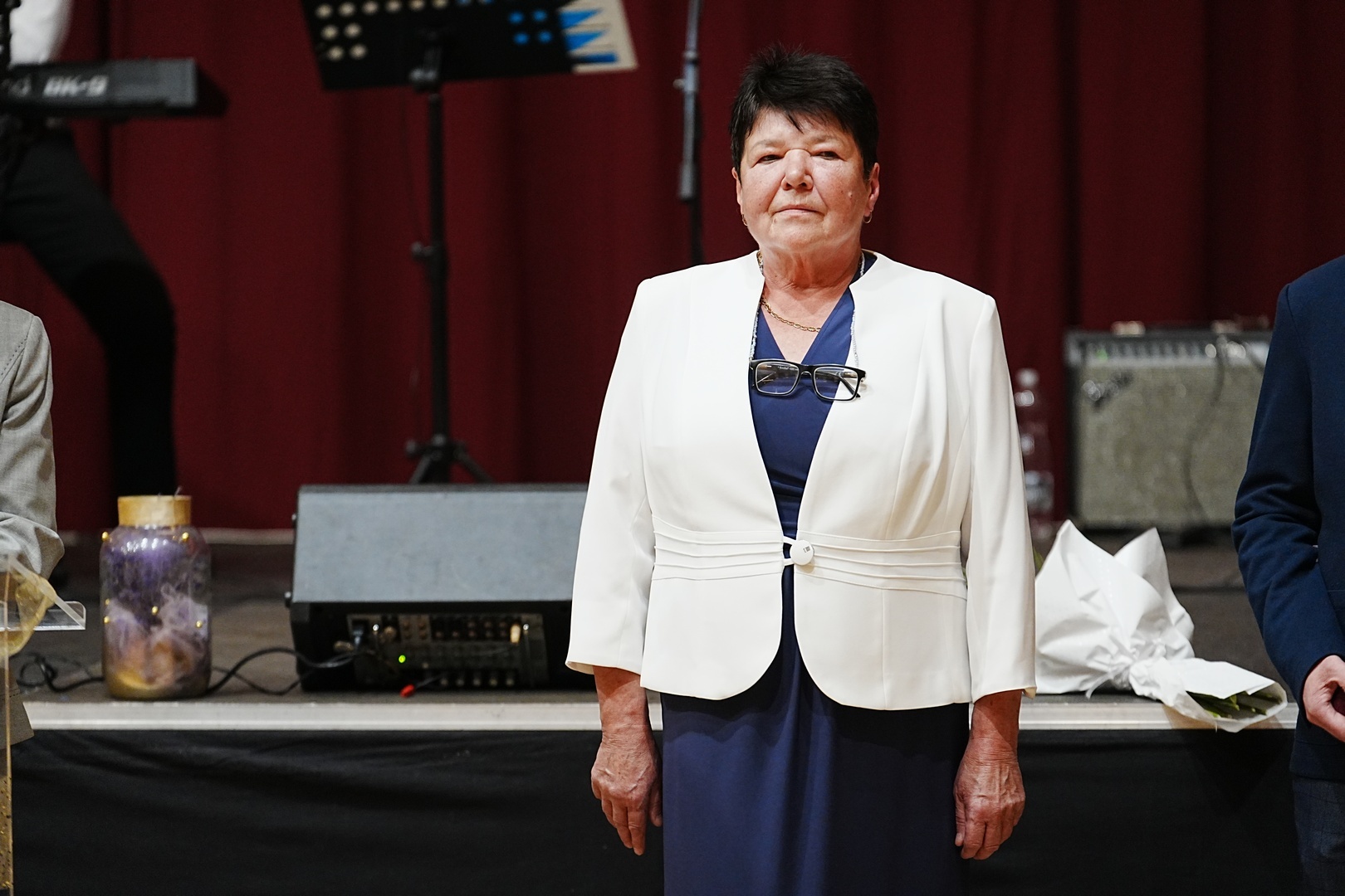 A köszöntők után adták át a Békés Vármegyei Központi Kórház és a Gál Ferenc Egyetem közös elismerését, a Diploma Honoris díjat, amelyet idén Fekete Elekné érdemelt ki. Gizi nővér Körösladányban született, majd Gyulán végezte középiskolai tanulmányait, ahol általános ápolói végzettséget szerzett 1979-ben. Pályakezdőként a gyulai kórház II. számú sebészeti osztályán kezdte meg a munkát, amely mellett továbbra is tanult, 1980-ban felnőtt szakápoló lett. 1986-ban, amikor új helyre költözött a sebészeti osztály, a földszinti munkacsoport tagja lett, 1996 és 2000 között főnővérként irányította a csoport munkáját. 1997-ben inkontencia rehabilitációs nővér tanfolyamot végzett. 1996-ban kezdte meg a működését a gyulai kórházban az otthonápolási szolgálat, amelyhez elsőként csatlakozott, valamint folyamatosan részt vett az ápoló tanulók, hallgatók, az ápolástani gyakorlaton résztvevő orvostanhallgatók oktatásában is. 2019-ben nyugdíjba vonult, de az otthonápolásban még ma is önkéntes segítőként dolgozik. Munkáját már korábban is elismerték, 2013-ban az Év szakdolgozója kitüntetést kapott.