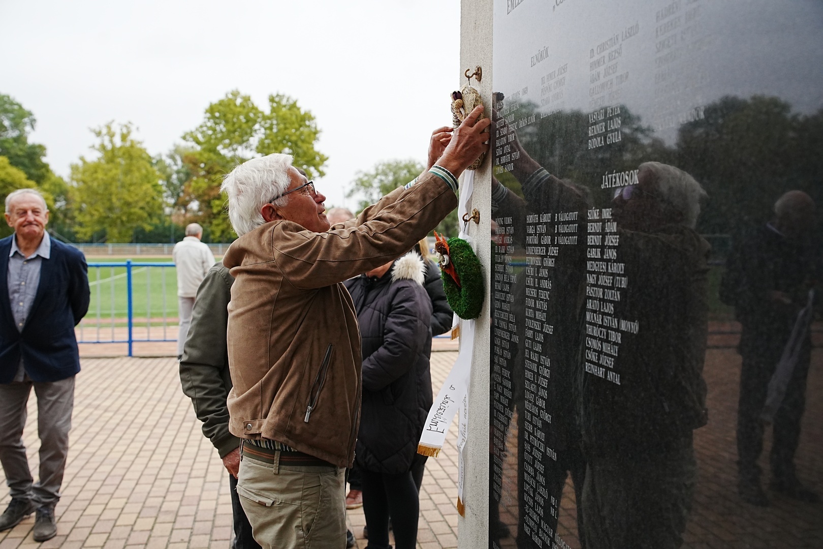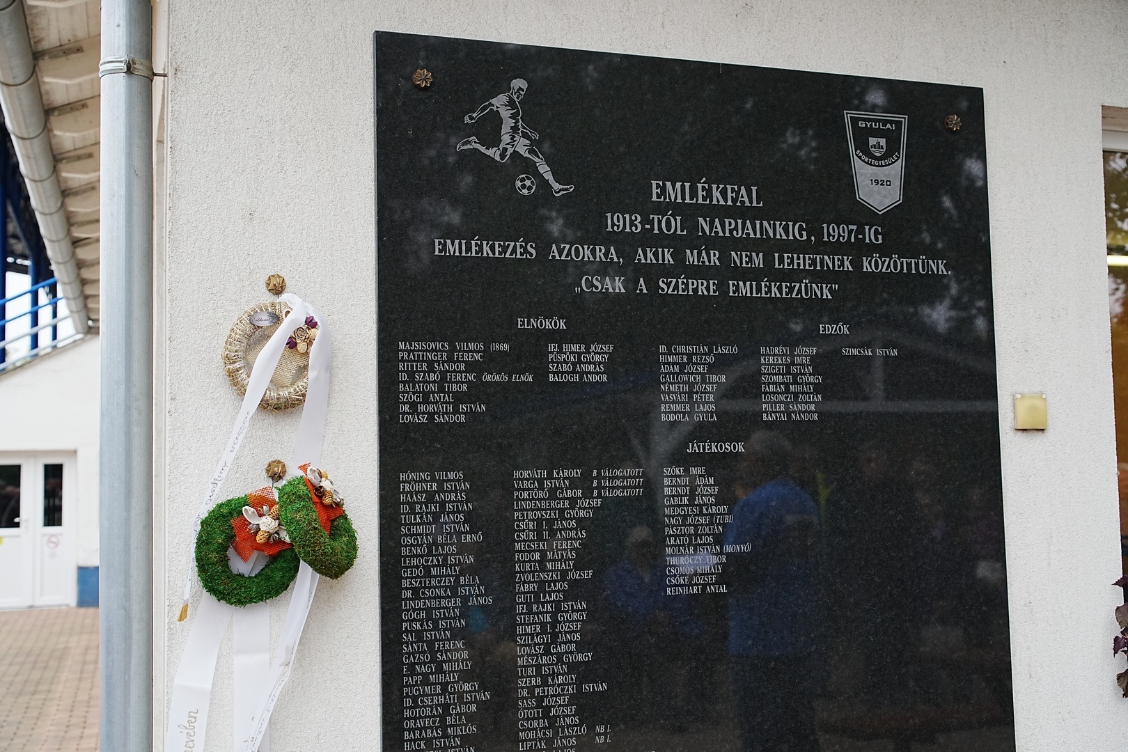 A rendezvényen megkoszorúzták az emlékfalat is, amelyre tavaly óta két új név került: a gyulai futballcsalád Csőke Józseftől és Reinhart Antaltól búcsúzott el.
