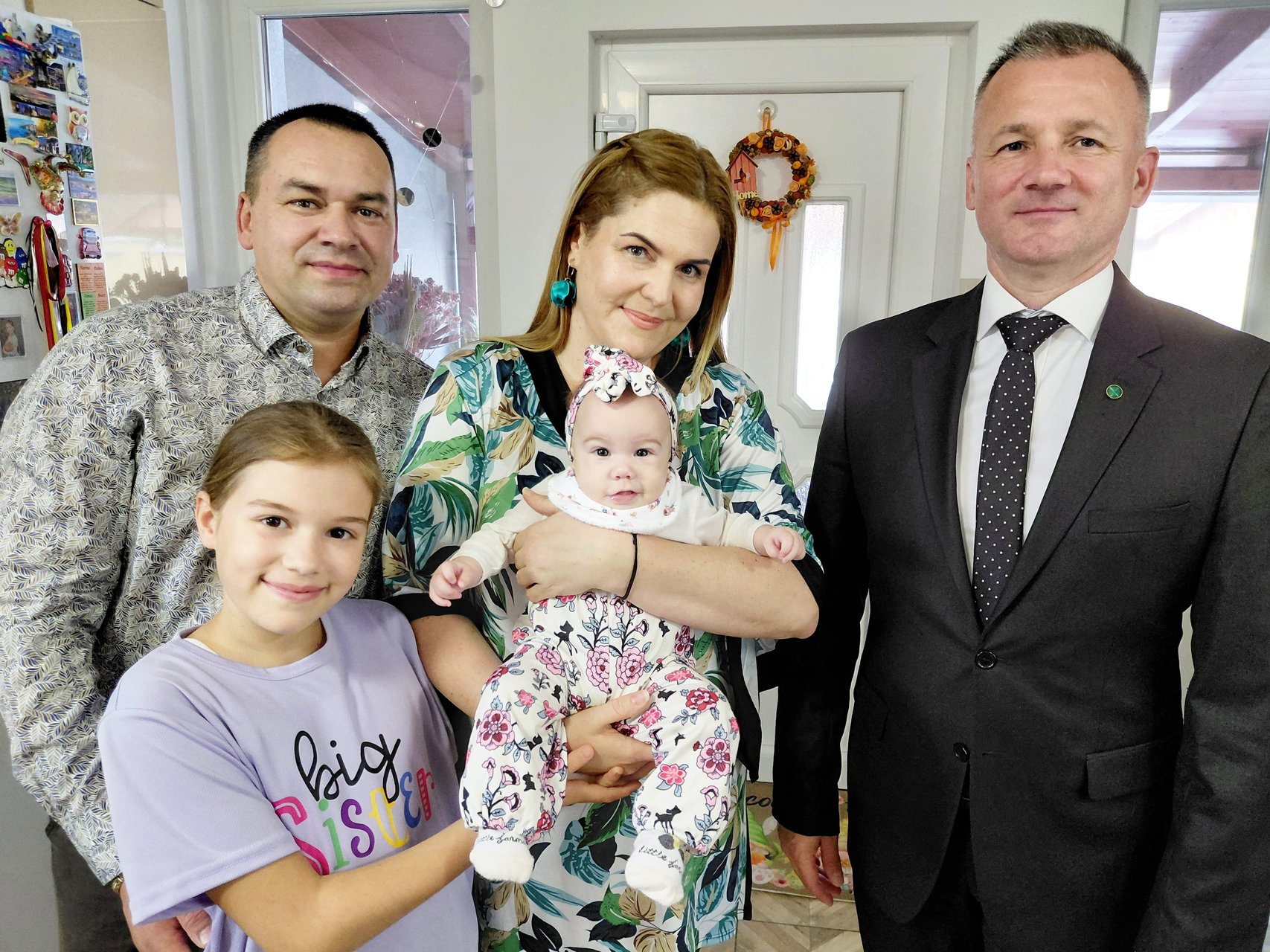 Gombos Aliát köszöntötte Görgényi Ernő a Babaruha program keretében október 6-án. Az önkormányzati képviselő virágot, névre szóló kisruhát és egy Póka György-festményt ajándékozott a családnak.