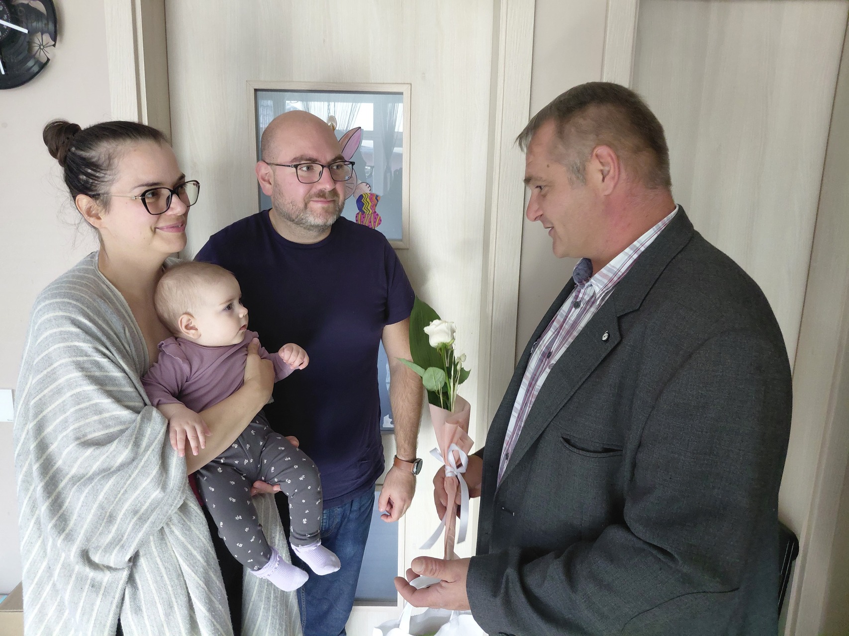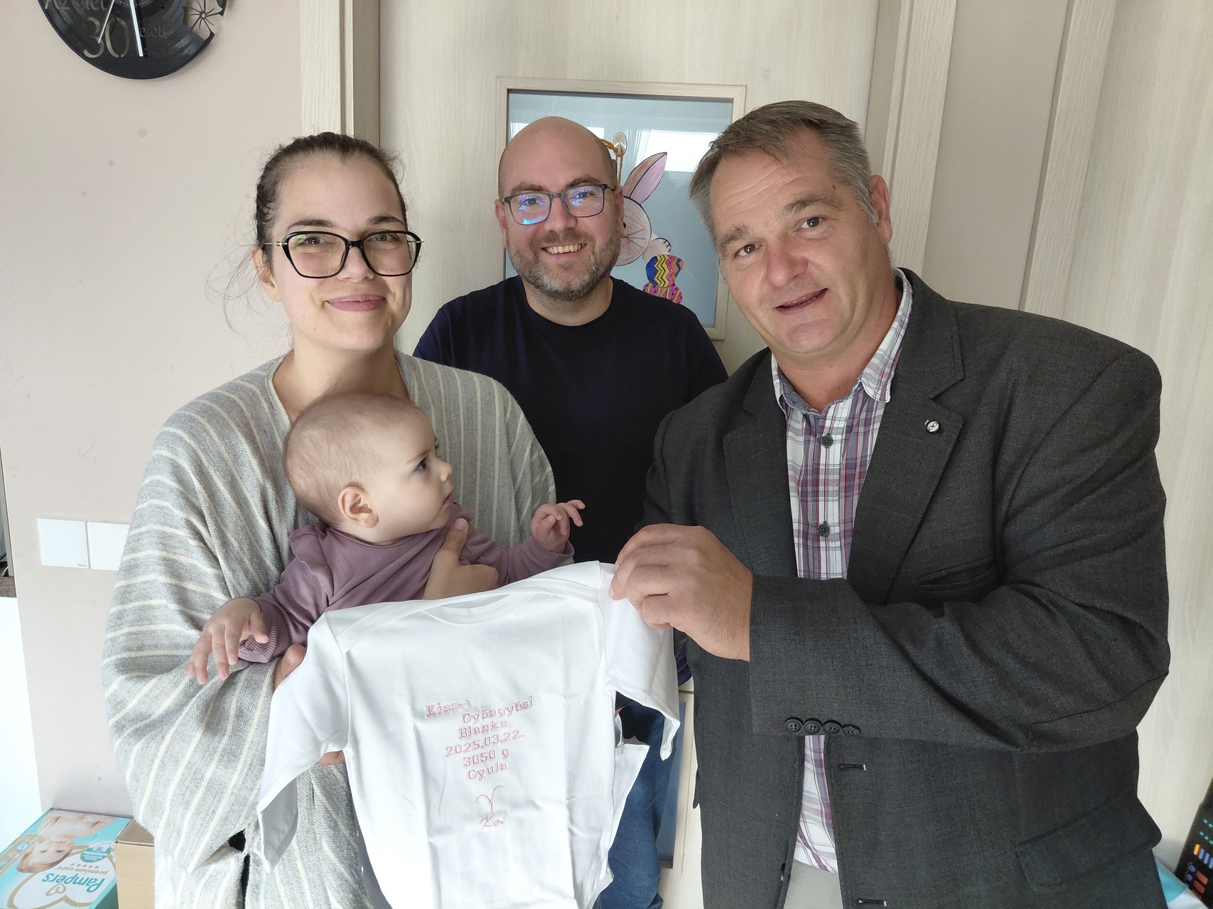 Kiss-Gyöngyösi Blankát köszöntötte Veres András a Babaruha program keretében október 8-án. Az önkormányzati képviselő virágot, névre szóló kisruhát és egy Póka György-festményt ajándékozott a családnak.