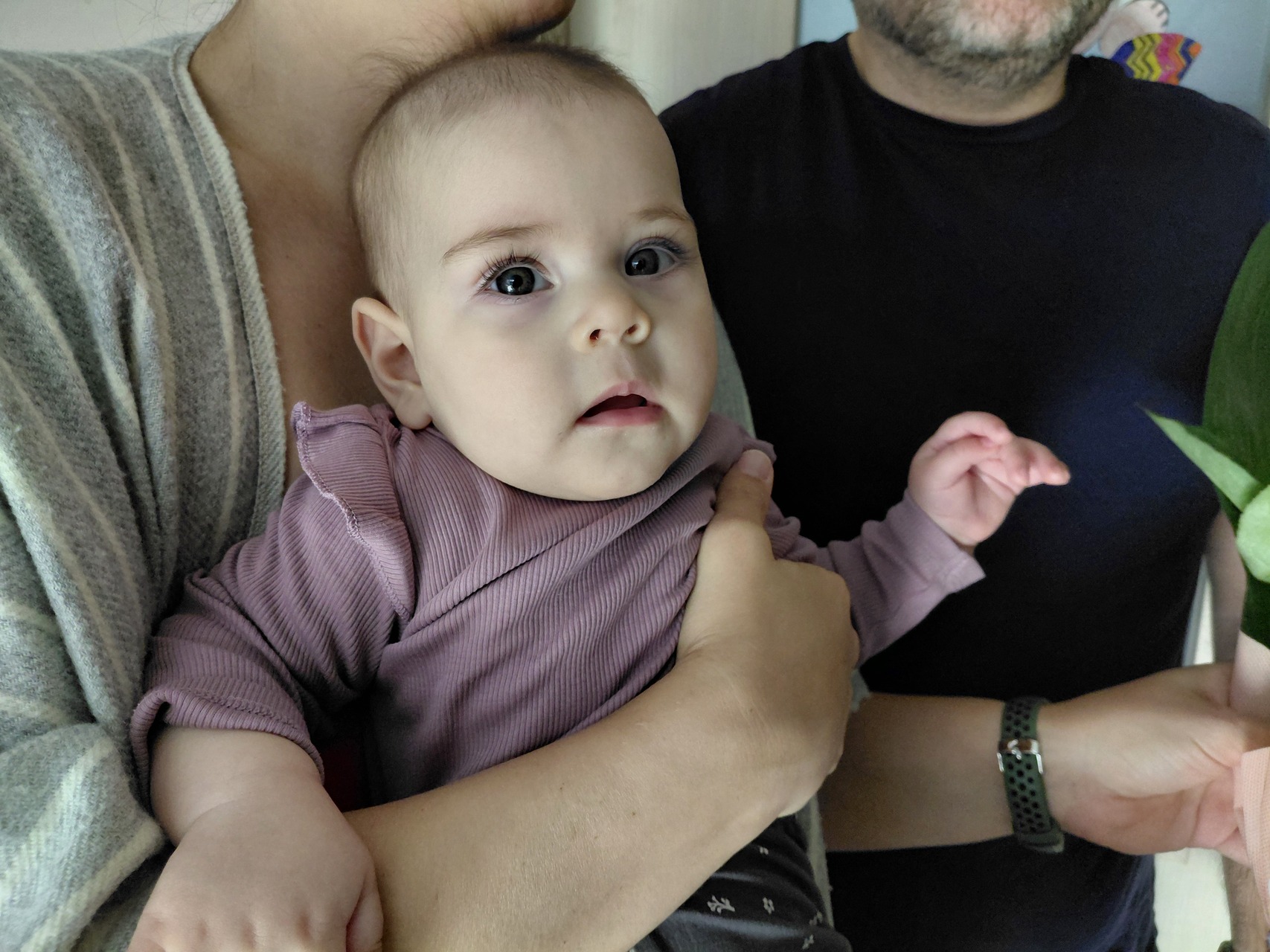 A csöppség jól alszik, jól eszik, érdeklődő. Két testvér, egy 3 éves és 8 éves várta, akik sokat segítenek a kislány körül. Hozzátette: a nevét közösen választották ki az édesapával.