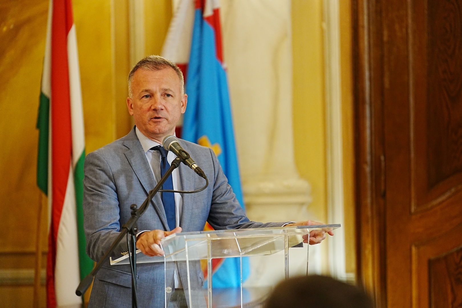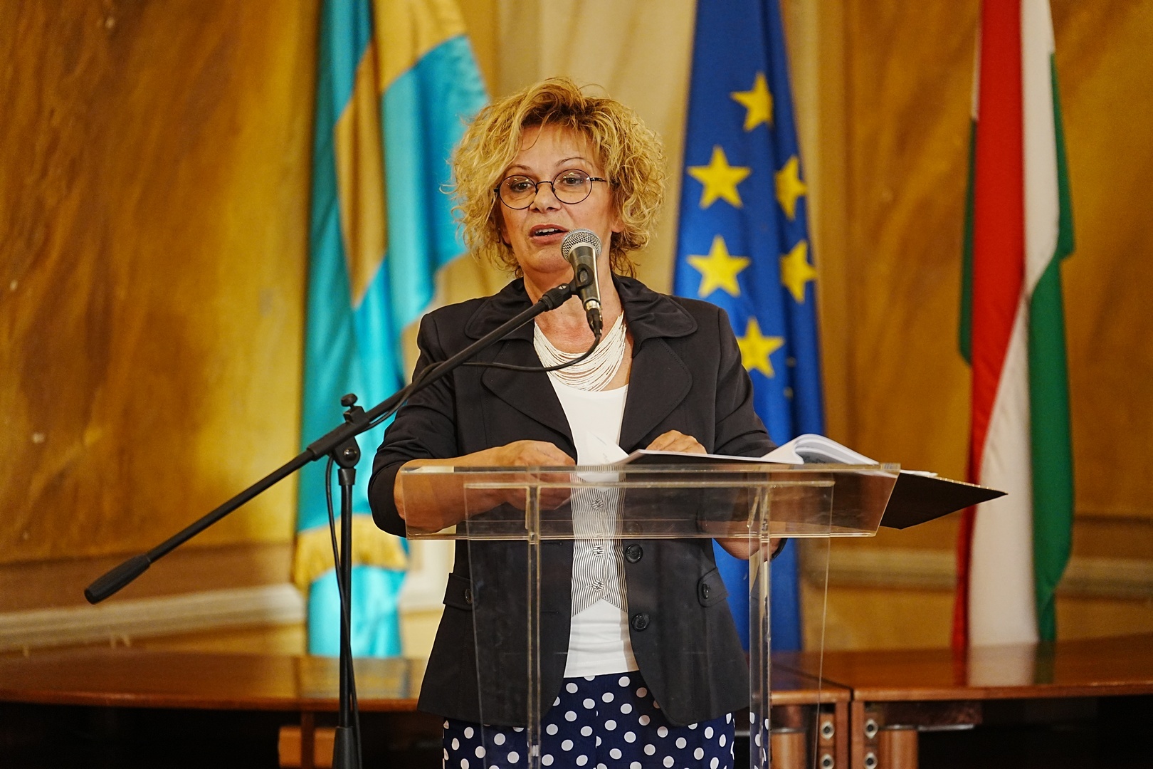 Köszöntőjében azt is mondta: hálásak lehetünk elődeinknek, akik, korukat megelőzve, környezettudatosan gondolkodtak, hiszen másfél évszázaddal ezelőtt úgy alakították ki a város csapadék- és belvízelvezető rendszereit, hogy azok a víz megtartását szolgálják.