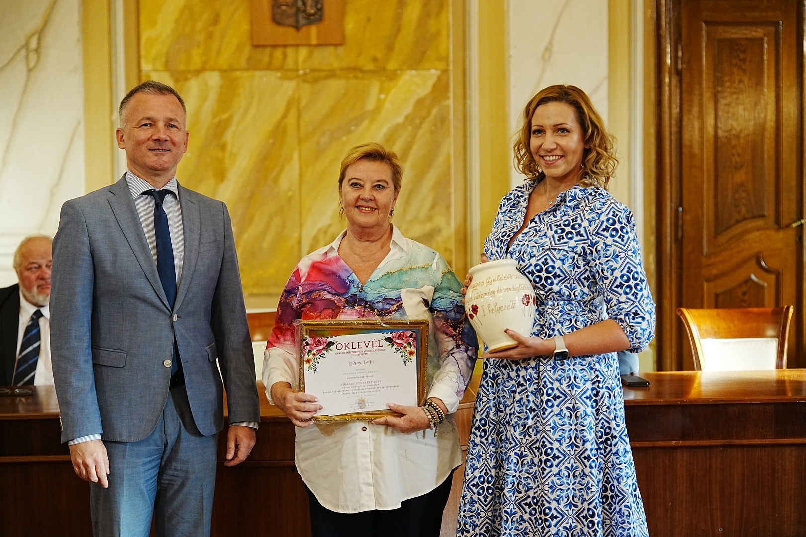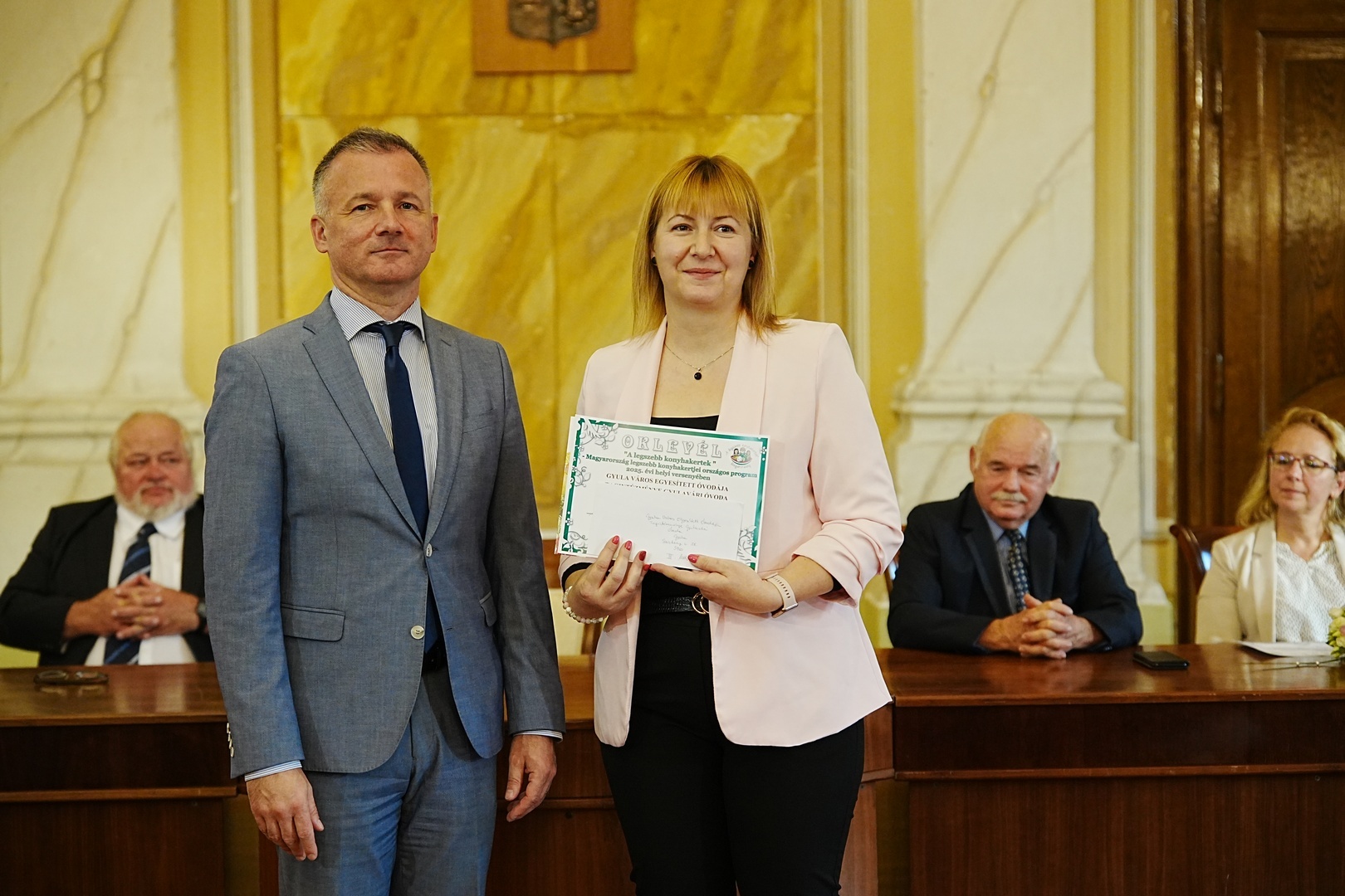 A Gyulai Városszépítő és Környezetvédő Egyesület különdíja a tömbházak környezetében lévő virágoskerteket példaértékűen gondozónak: