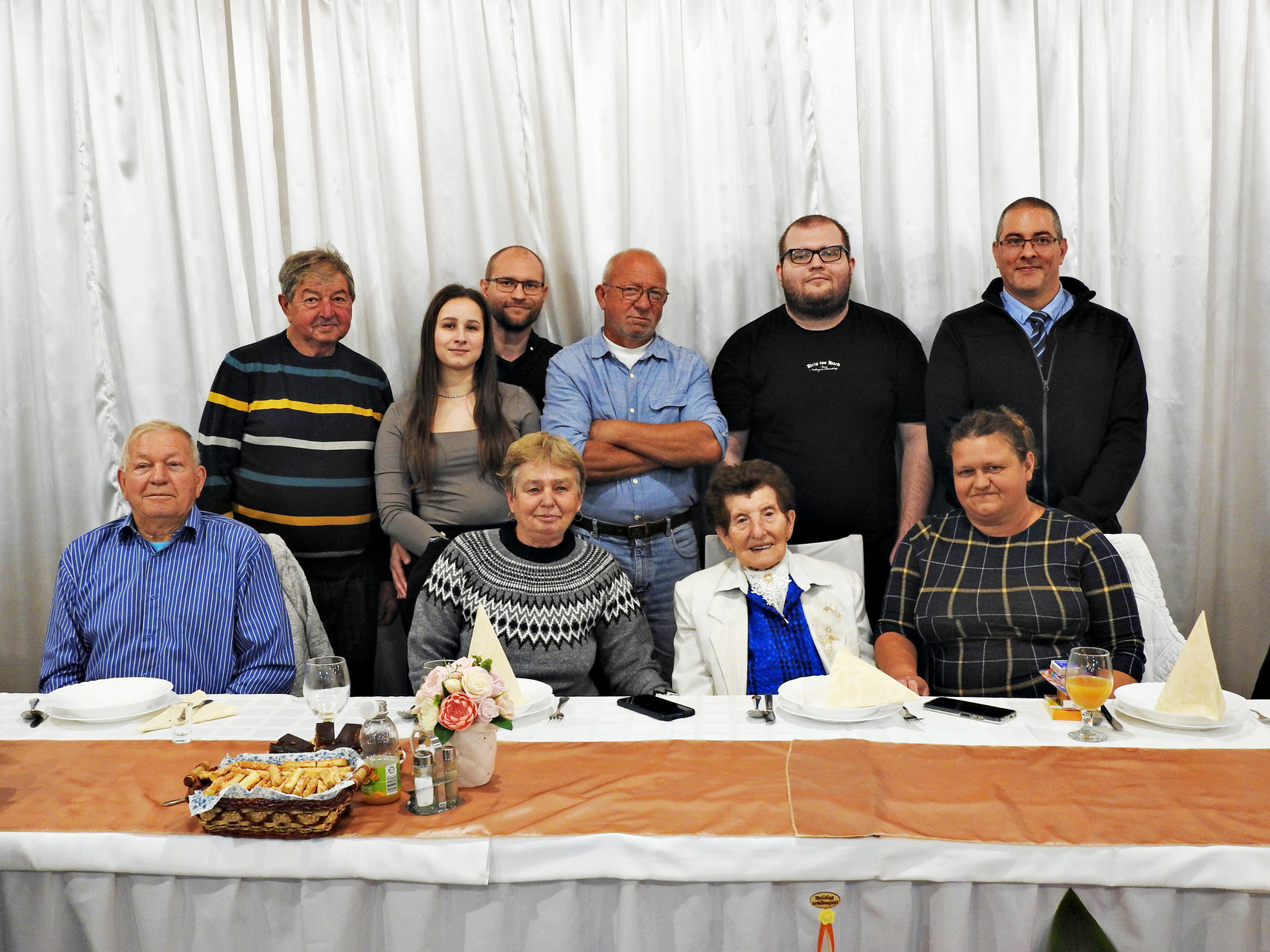 Erzsike néni férje, aki ötven évvel ezelőtt hunyt el, szintén gazdálkodott. Mezőgyánban éltek, házasságukból három gyermek született, majd öt unokával és öt dédunokával bővült a család. Férje halála után az ünnepelt Békéscsabán vett házat, Gyulára, a lányáékhoz, négy éve költözött.