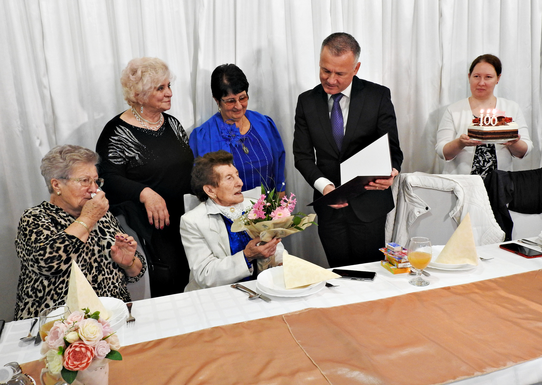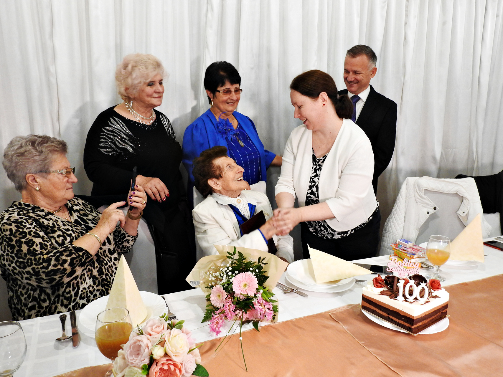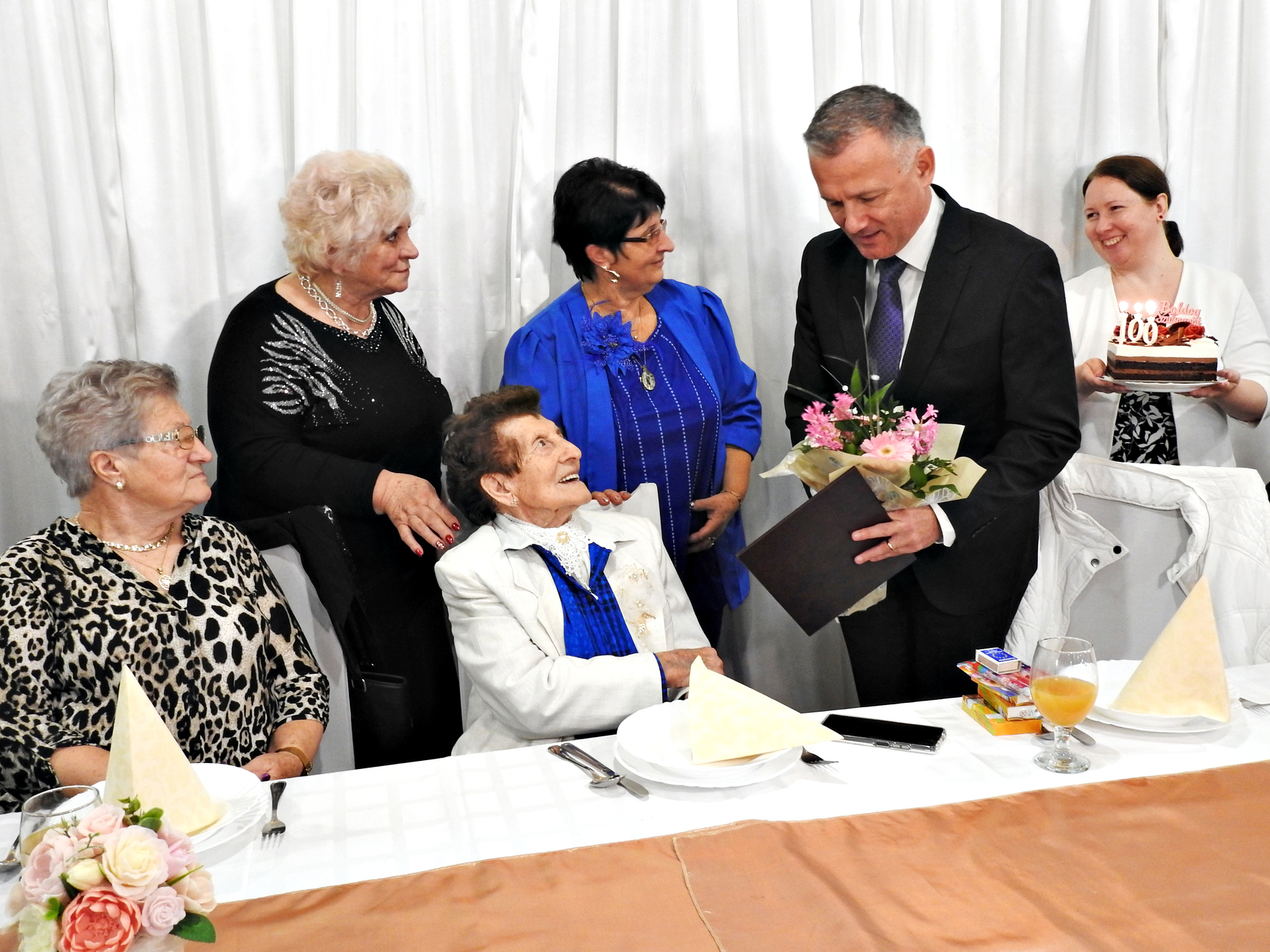 Nagy Sándornét köszöntötte századik születésnapján, október 11-én Görgényi Ernő, Gyula város polgármestere és Timár Andrea aljegyző. Erzsike néni a Tölgyfa étteremben családja körében ünnepelt.