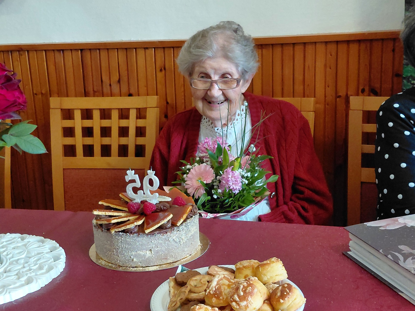 Az ünnepelt háztartásbeli volt, fiatalon szeretett bálba járni és kézimunkázni, manapság sokat olvas, beszélget és keresztrejtvényt fejt.
