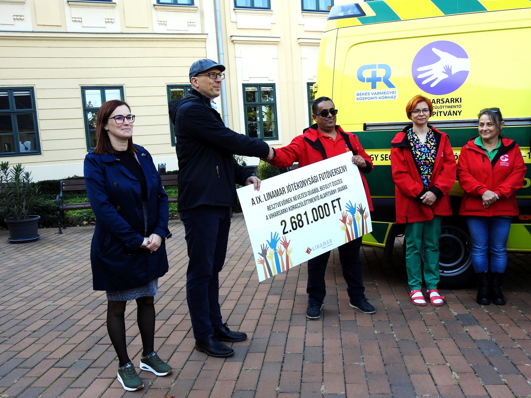 Minden eddiginél nagyobb összeget, 2 millió 681 ezer forintot gyűjtöttek össze a Linamar Hungary Zrt. jótékonysági futóversenyén a Viharsarki Koraszülöttmentő Alapítványnak, az adományt október 15-én a gyulai Almásy-kastély előtt adták át jelképesen Abdulrahman Abdulrab Mohamed kuratóriumi elnöknek.
